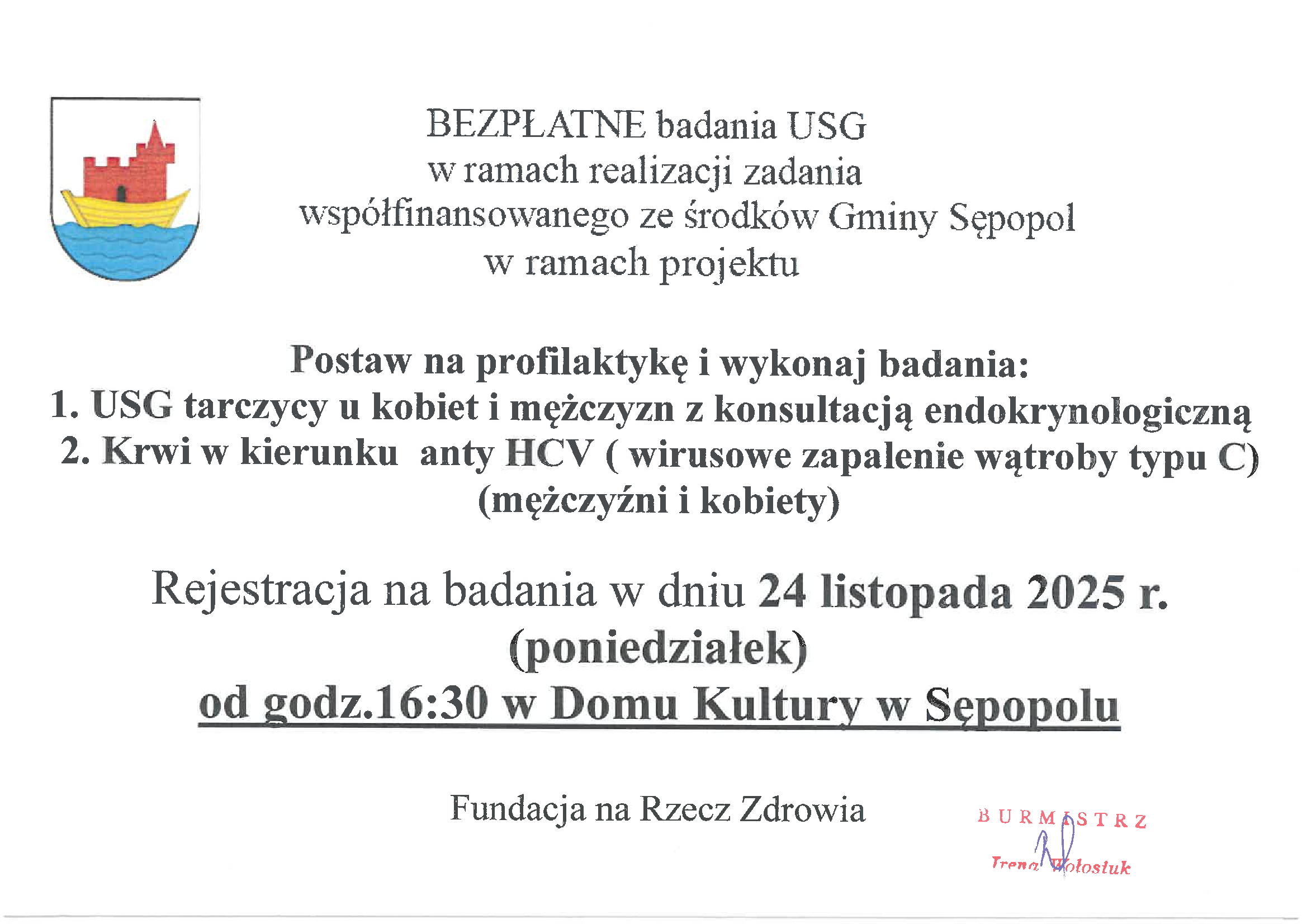 Bezpłatne badania USG dla mieszkańców gminy Sępopol !