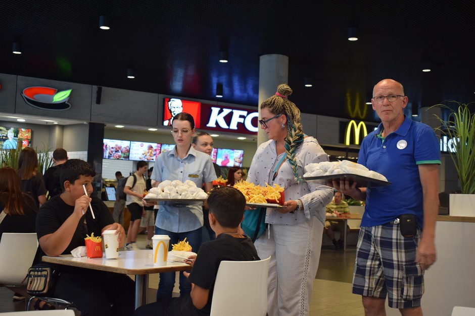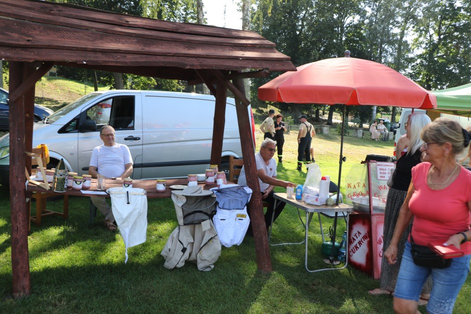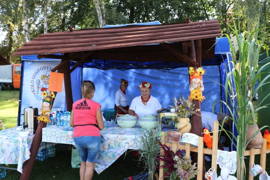 Na wszystkich czekała gorąca grochówka, wiejski chleb ze smalcem, kiszone ogórki, swojskie wędliny oraz napoje, którymi częstowały panie z Urzędu Miejskiego. Było dużo pysznego jedzenia dzięki stoiskom z gastronomią.