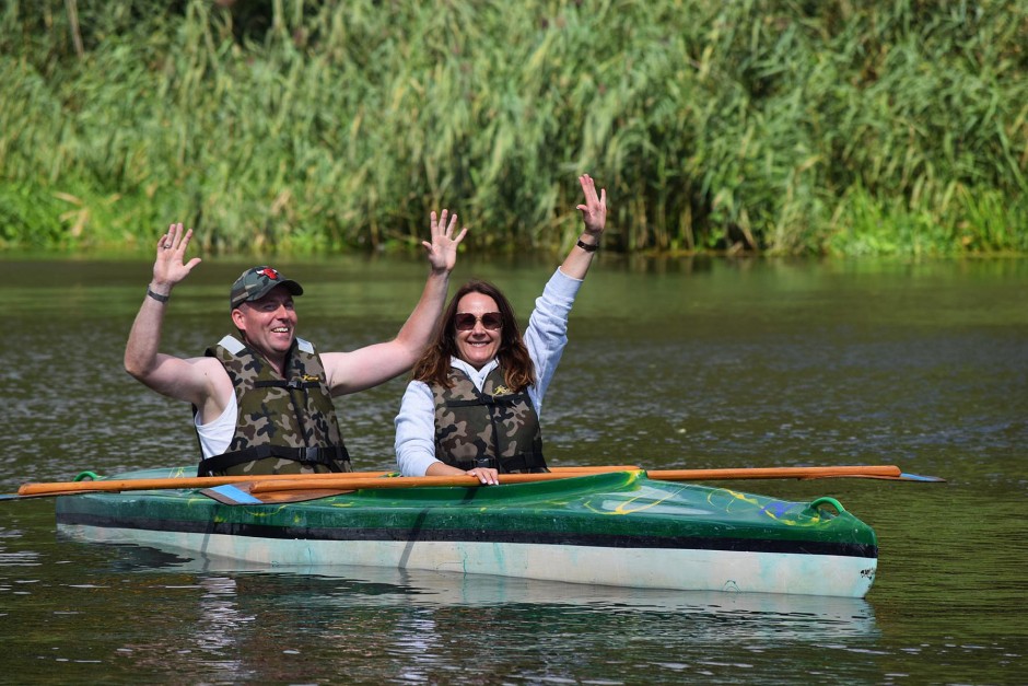 Szczególne podziękowania należą się Państwu Baczewskim, za nieodpłatne wypożyczenie kajaków, organizację wycieczki katamaranem po rzece Łynie oraz pyszny obiad przygotowany dla gości przez Panią Anię, a także Panu Grzegorzowi Borowskiemu, który interesująco opowiadał historię Sępopola naszym gościom.