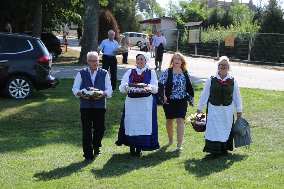 Na uroczystość przybyli zaproszeni goście, w tym: Starostowie Dożynek - Państwo Agnieszka i Arkadiusz Kuźniak, Starosta Powiatu Bartoszyckiego - Pani Elżbieta Zabłocka oraz przedstawiciele władz lokalnych, instytucji rolniczych i organizacji społecznych.