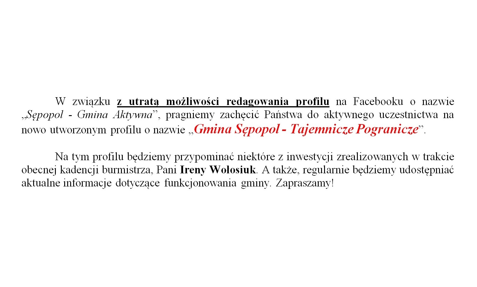 Gmina Sępopol - "Tajemnicze Pogranicze" - najnowsze informacje znajdziesz na nowym profilu naszej gminy...