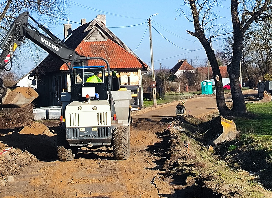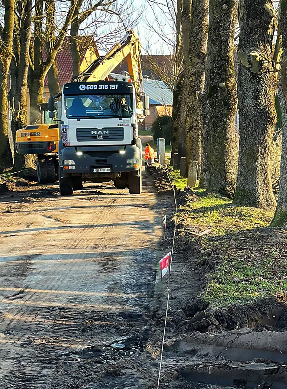 Po ustaniu intensywnych i długotrwałych opadów deszczu, prace drogowe w miejscowościach Gierkiny i Lwowiec nabierają tempa. Wykonawca obecnie układa warstwy konstrukcyjne z kruszyw oraz zjazdy do posesji. W najbliższych dniach prace rozpoczną się również na pozostałych drogach, które będą realizowane przez firmy działające jako podwykonawcy w ramach tej inwestycji. Prace wykonywane są w ramach programu inwestycji strategicznych Polski Ład, który ma na celu poprawę infrastruktury drogowej w całym kraju.