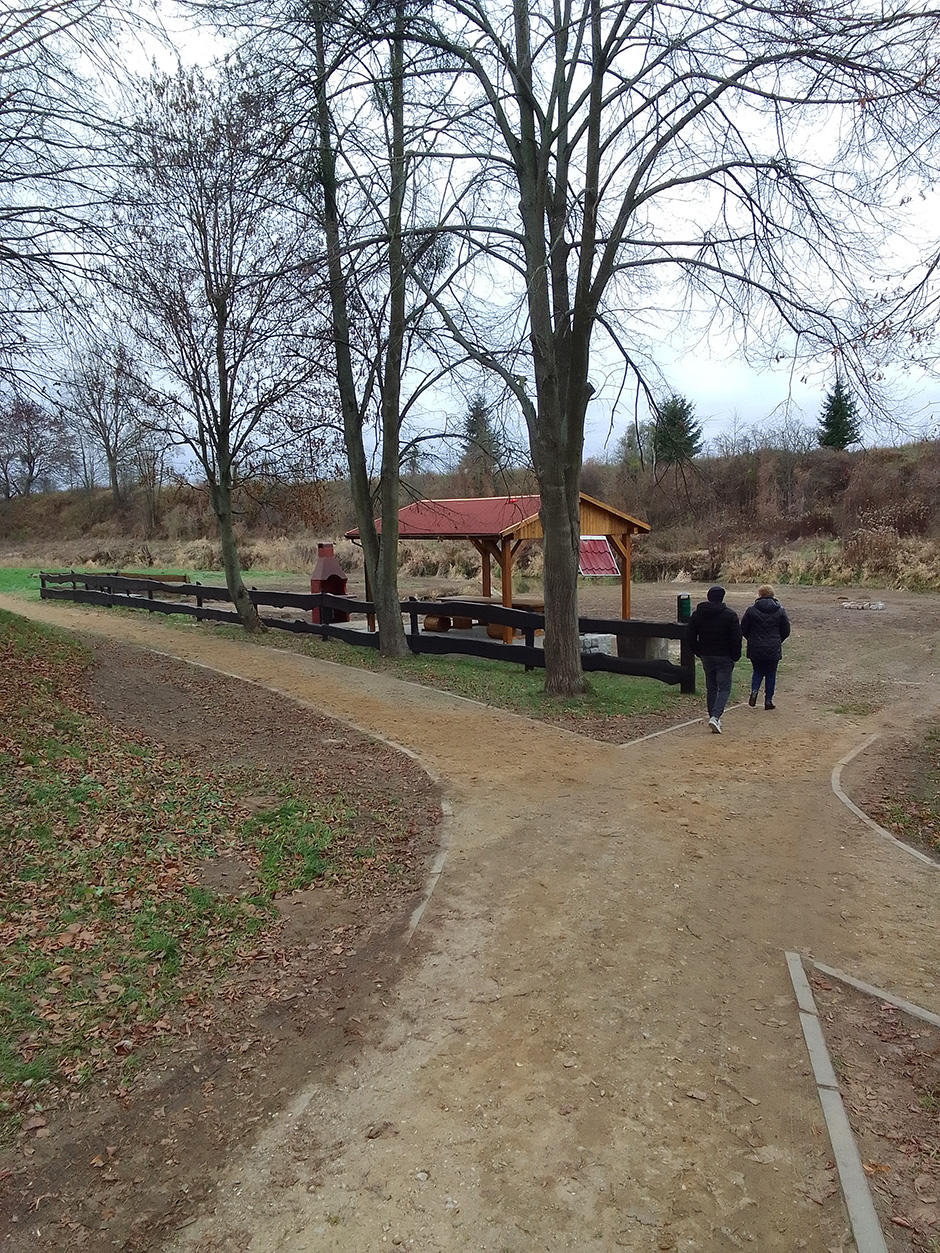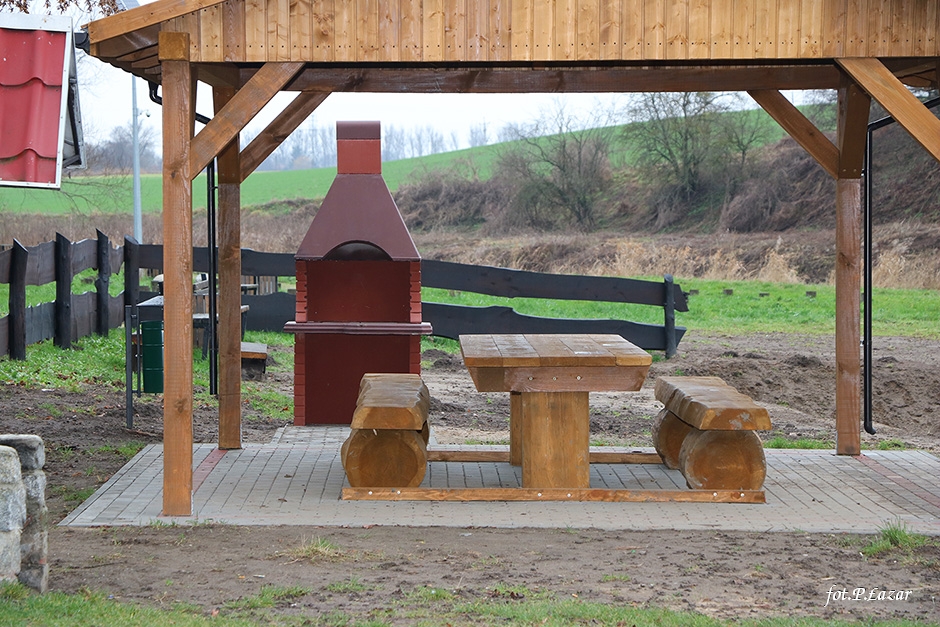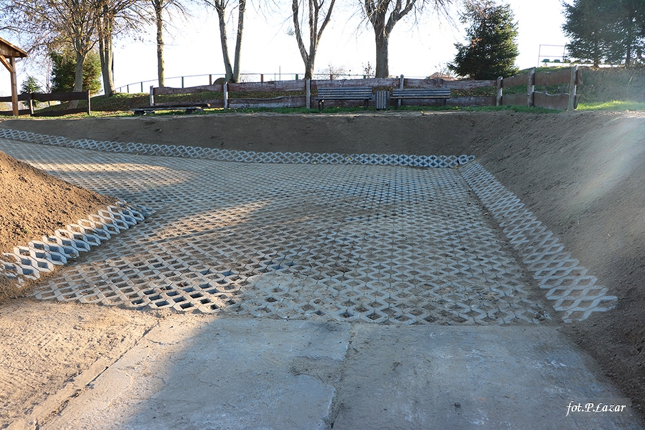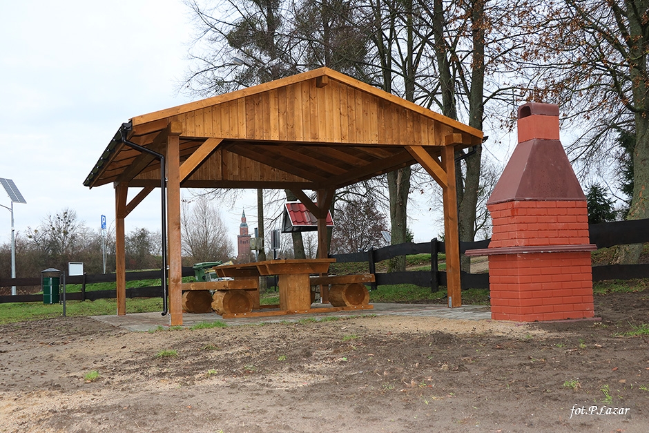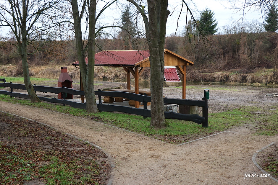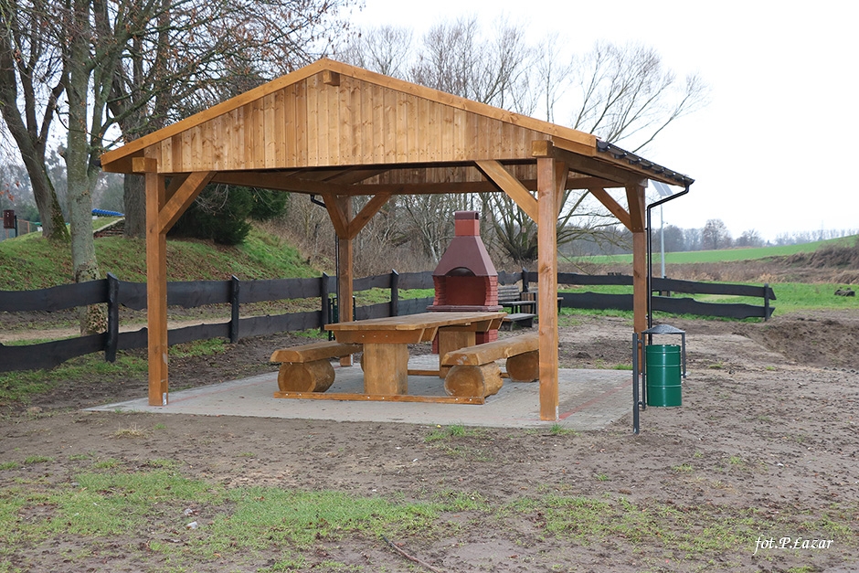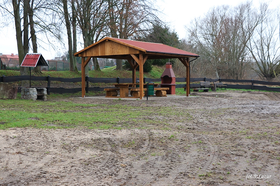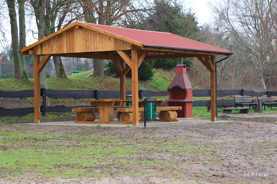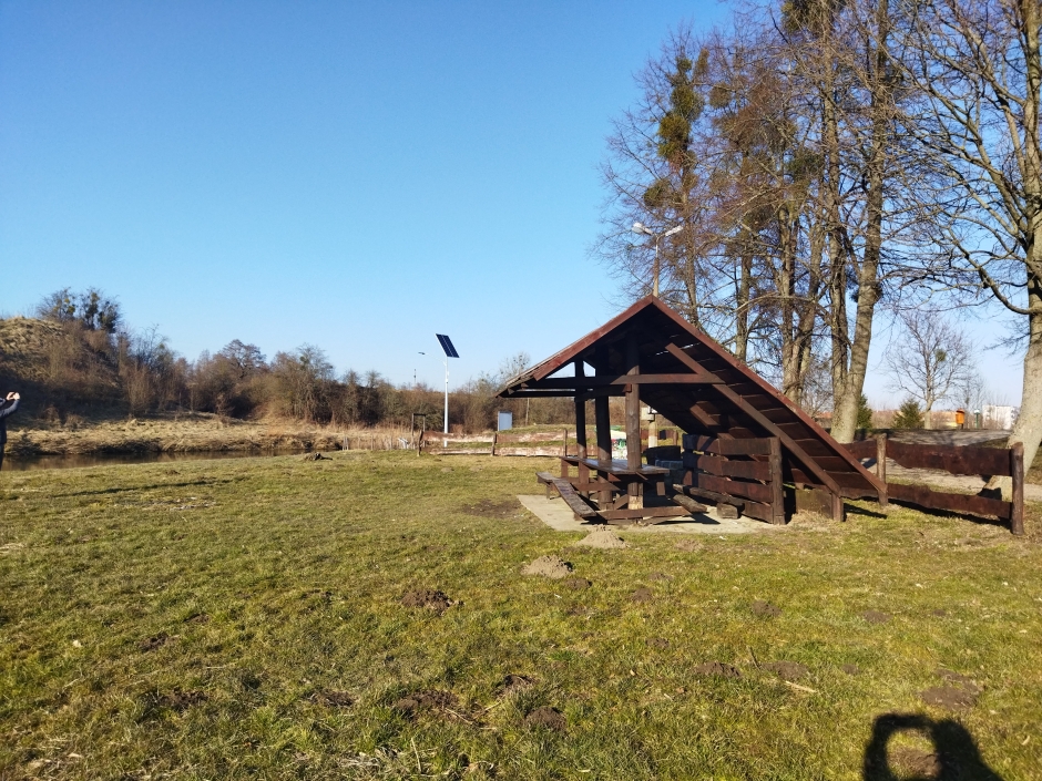 Inwestycja polegała między innymi na odtworzeniu wiaty, ułożeniu polbruku pod wiatą. Tę cześć prac wykonała lokalna firma Mar-Bud p. Marcina Poźniaka ze Szczurkowa. Pozostałe prace polegały na: posadowieniu betonowego grilla, wymianie koszy na śmieci, naprawie oraz odnowieniu ogrodzenia, wykonaniu paleniska, wyrównaniu terenu który następnie obsiano trawą oraz wzmocnieniu miejsca do wodowania łodzi i kajaków. Część prac wykonano dzięki zaangażowaniu pracowników ZGMiUK’u, za co serdecznie dziękujemy. Natomiast firma ARTAR z Kętrzyna wykonała malowanie oraz oznakowanie miejsca parkingowego dla osób niepełnosprawnych. Wraz z nadejściem wiosny teren się zazieleni, co jeszcze bardziej poprawi estetykę miejsca.