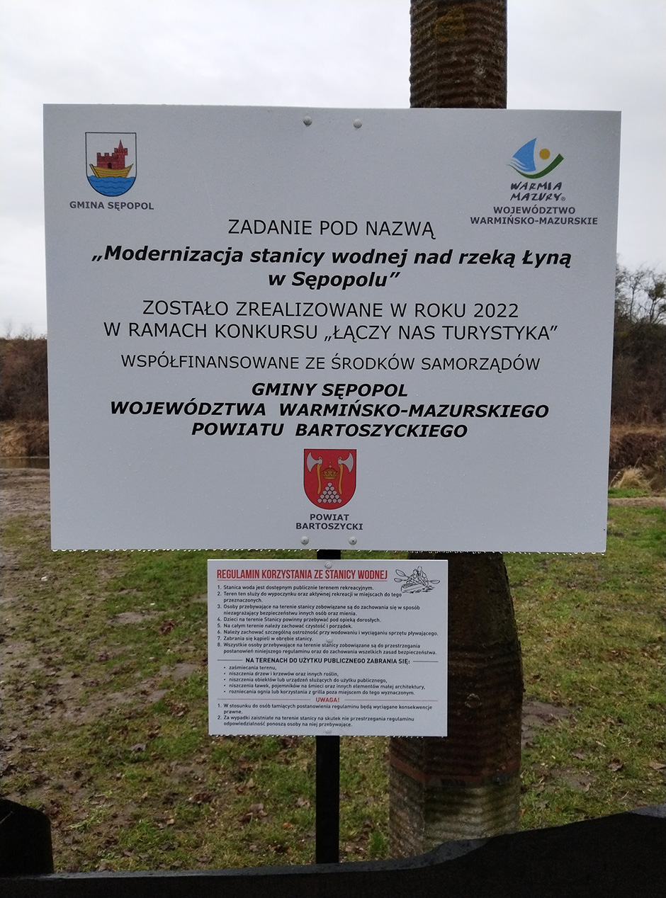 Dzięki wsparciu powiatu bartoszyckiego oraz samorządu województwa warmińsko-mazurskiego w ramach konkursu ,,Łączy nas turystyka”, zakończono inwestycję polegającą na modernizacji stanicy nad rzeką Łyną w Sępopolu.