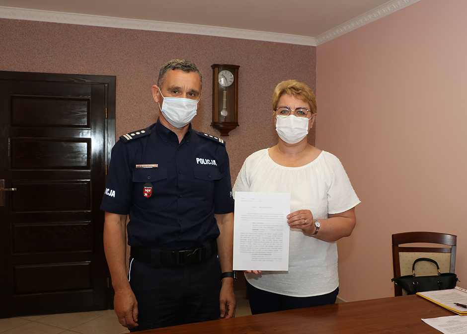 W ostatnich dniach czerwca zawarto akt notarialny między darczyńcą, jakim była nasza gmina, a obdarowanym – skarbem państwa, reprezentowanym przez Wojewódzką Komendę Policji w Olsztynie. W dniu podpisania aktu notarialnego w kancelarii notarialnej stawił się inspektor Jan Markowski, zastępca komendanta wojewódzkiego oraz Irena Wołosiuk, burmistrz Sępopola.