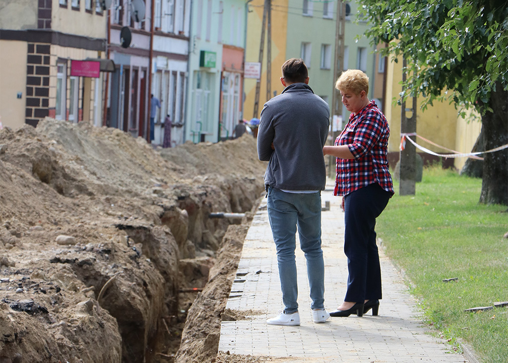 Trwają prace dotyczące wymiany rurociągów sieci wodociągowej w ścisłym centrum naszego miasta. Inwestycja ta jest konieczna do wykonania w związku z bardzo złym stanem istniejącej sieci oraz z uwagi na przebudowę ulic śródmieścia. Aby prace te mogły zostać wykonane niezbędne było uzyskanie zgody Wojewódzkiego Konserwatora Zabytków i stosowne pozwolenie gmina uzyskała.