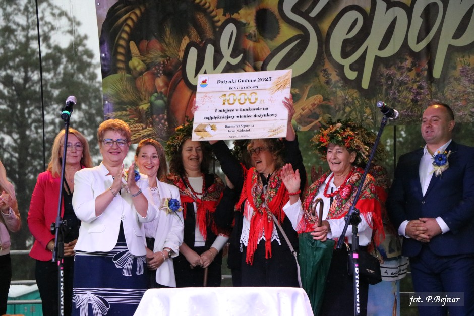 W tym roku naszą gminę dumnie reprezentowało Sołectwo Romankowo wraz z Panią burmistrz Ireną Wołosiuk. Zaprezentowano wieniec, który 23 sierpnia br. zdobył I miejsce podczas Dożynek Gminnych w Sępopolu. Naszej drużynie udało się zdobyć wyróżnienie oraz nagrodę w wysokości 700 zł.