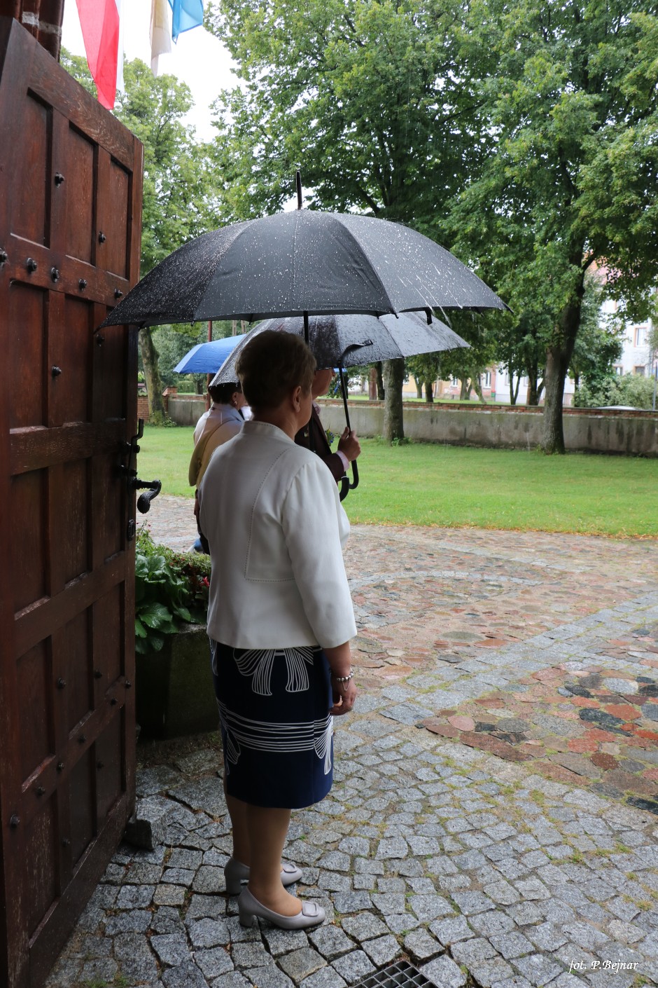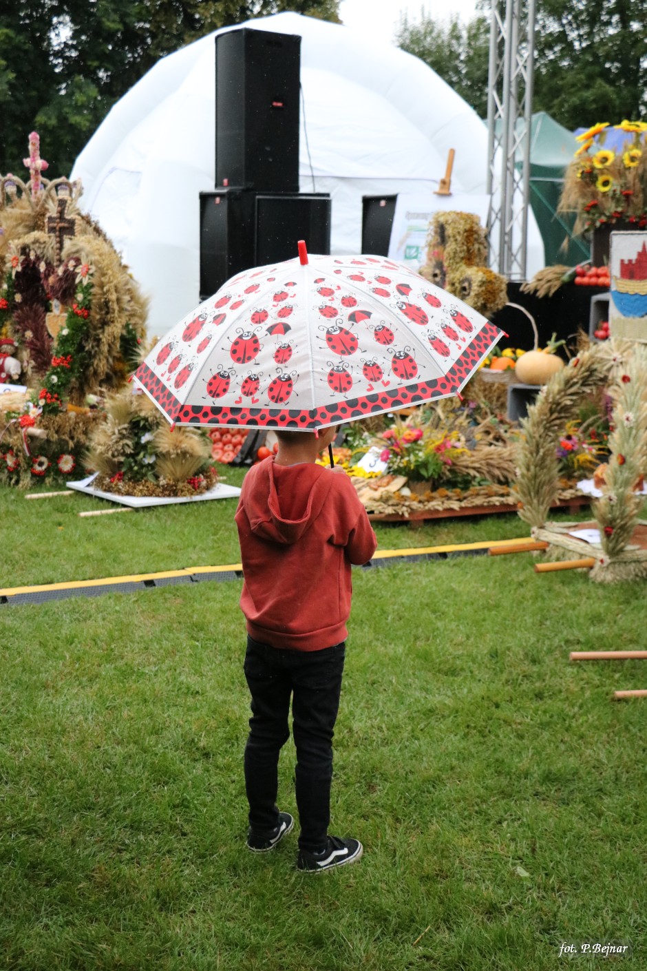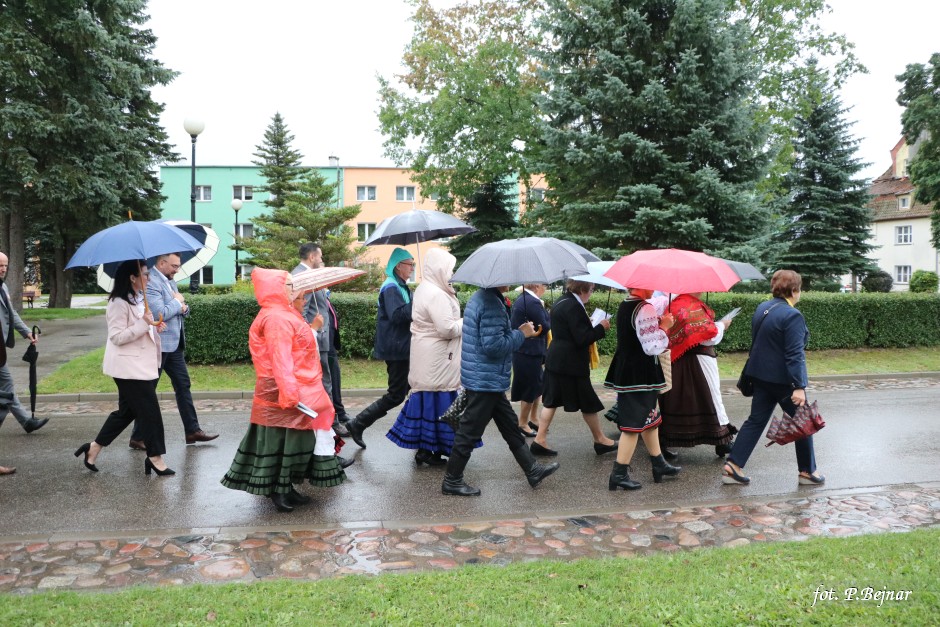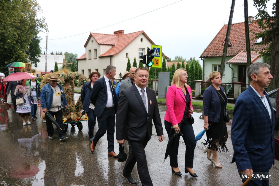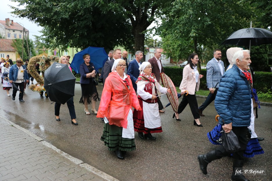 Następnie, zgodnie z tradycją, barwny korowód dożynkowy przeszedł ulicami miasta. Mimo padającego deszczu mieszkańcy dzielnie maszerowali z parasolkami, tworząc kolorowy i radosny pochód, który dotarł na Stadion Miejski, gdzie kontynuowano obchody.