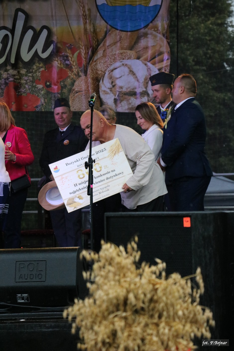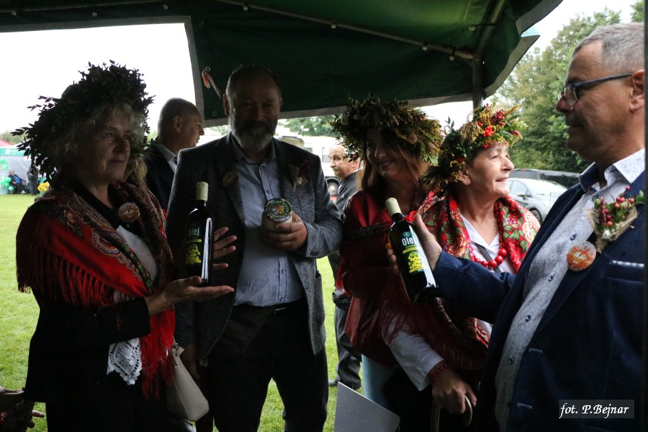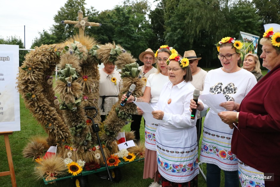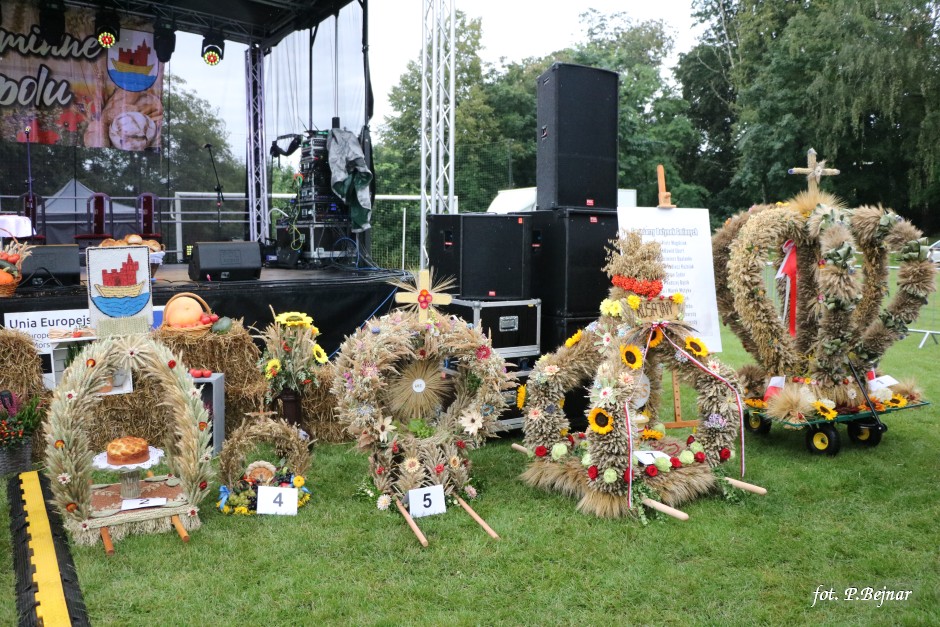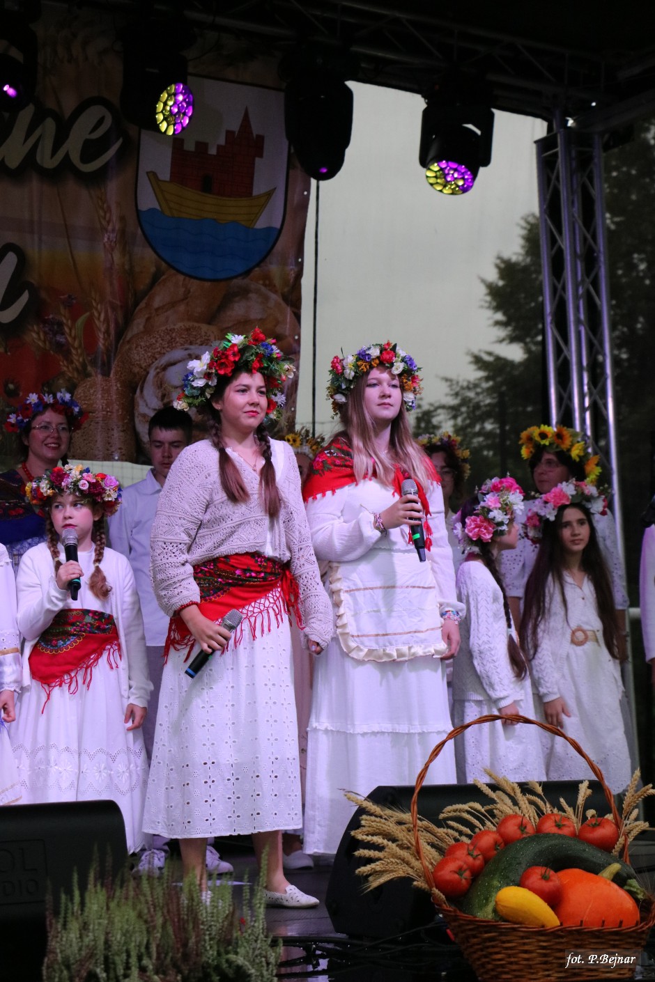 Po części oficjalnej nastąpiło rozstrzygnięcie konkursu na najpiękniejszy wieniec dożynkowy, w którym udział wzięło aż dziesięć drużyn. Każdy z prezentowanych wieńców był wyjątkowy i pełen symboliki, a poprzeczka z roku na rok jest coraz to wyższa. Wieńce robiły ogromne wrażenie swoją wielkością i dopracowaniem nawet najmniejszych detali, ich przygotowanie wymagało ogromnego nakładu pracy i zaangażowania całych społeczności. Podczas prezentacji niektóre grupy dodatkowo obśpiewywały swoje wieńce autorskimi pieśniami lub opowiadały wiersze własnego autorstwa, co nadało uroczystości piękny, swojski i radosny charakter.