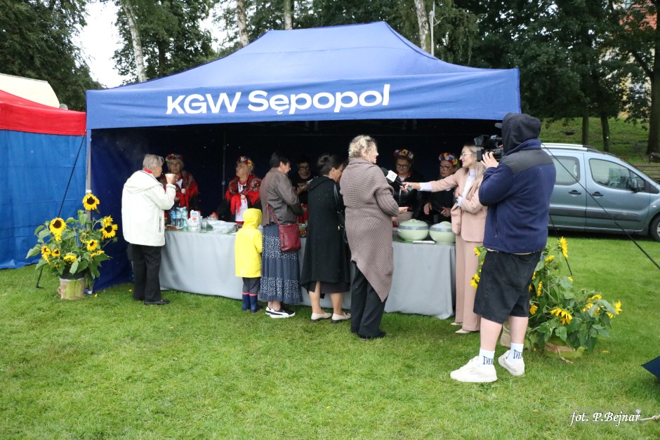 Dużym zainteresowaniem wśród mieszkańców cieszyły się barwne stoiska, ale szczególne wzbudził namiot Urzędu Miejskiego w Sępopolu, w którym można było bezpłatnie skosztować tradycyjnych potraw. Goście chętnie sięgali po bigos, swojskie szynki i wędliny, pajdę chleba ze smalcem oraz ogórki małosolne, co dodatkowo podkreślało gościnny i rodzinny charakter święta.