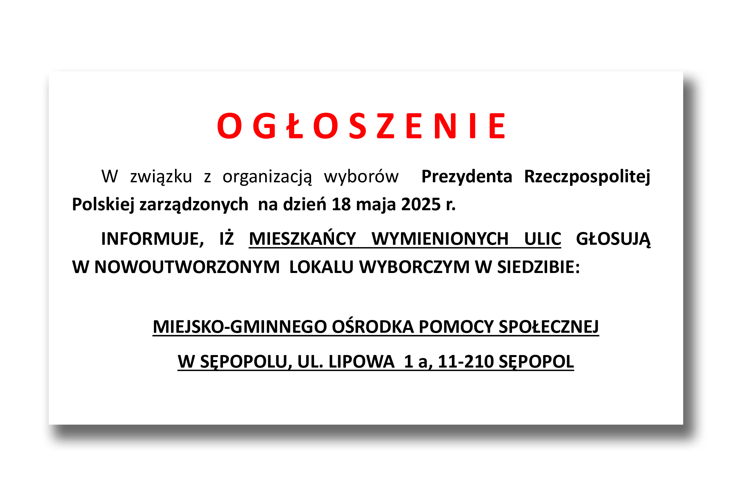 Uwaga! Nowy lokal wyborczy.
