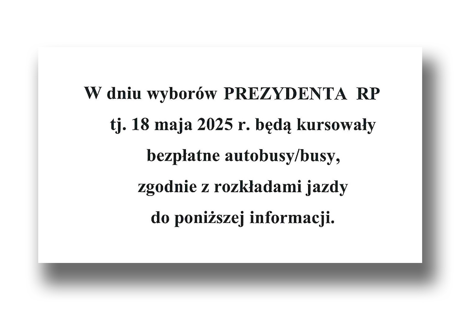 W trosce o komfort i dostępność lokali wyborczych, na terenie naszej gminy uruchomione zostaną bezpłatne kursy autobusów i busów.