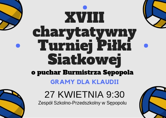 Wszystkich ludzi dobrej woli zapraszamy w sobotę 27 kwietnia na godz. 9:30 na XVIII charytatywny Turniej Piłki Siatkowej o Puchar Burmistrza Sępopola do ZSP w Sępopolu.