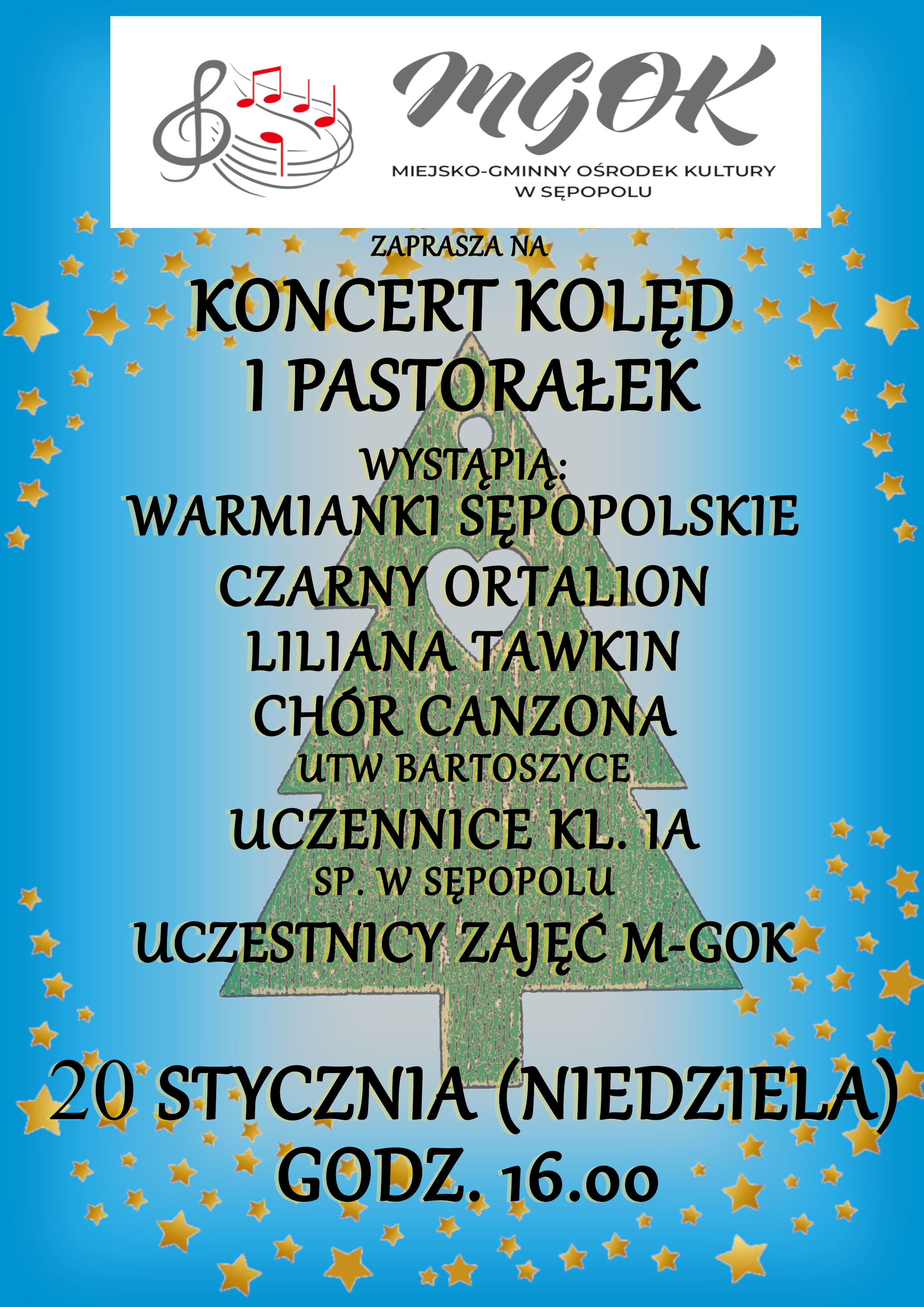 MGOK w Sępopolu zaprasza w tą niedzielę 20 stycznia na godz. 16:00 na koncert kolęd i pastorałek w wykonaniu rodzimych artystów i chóru Canzona z UTW w Bartoszycach