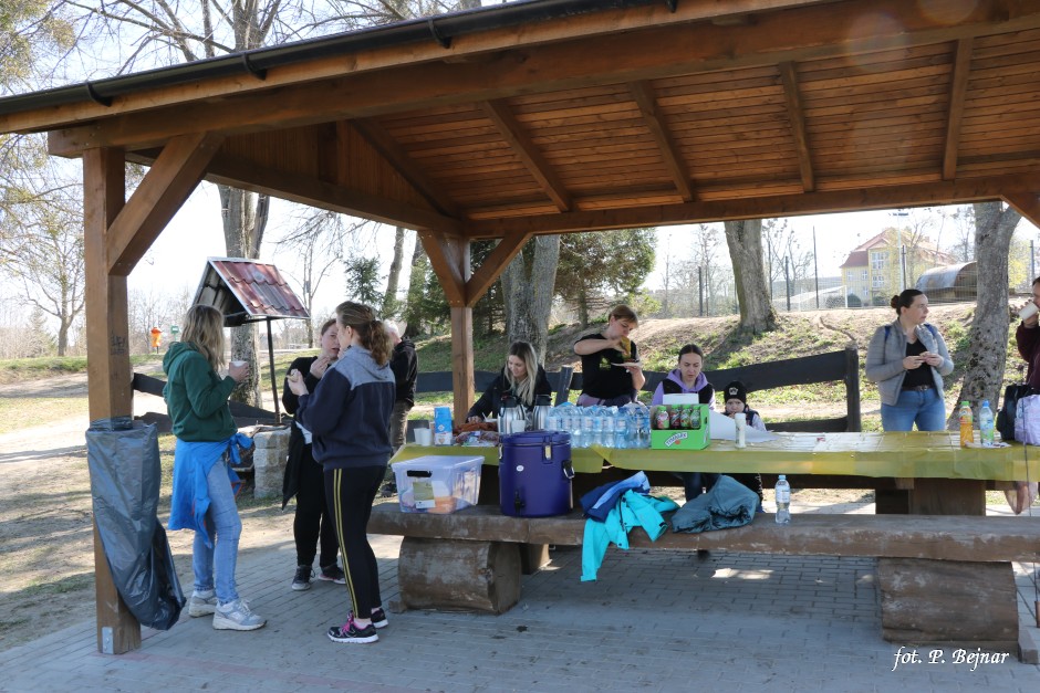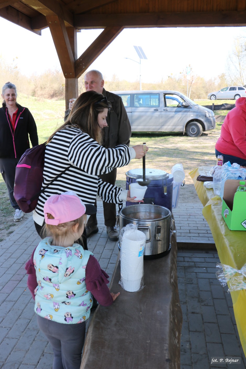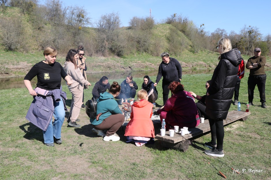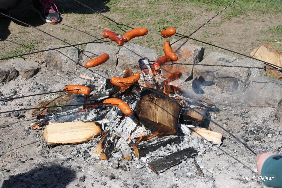 Po zakończeniu sprzątania na uczestników czekało ognisko na stanicy wodnej, gdzie przygotowano poczęstunek w postaci kiełbasek oraz gorącej grochówki. Była to okazja do odpoczynku i rozmów w miłej, plenerowej atmosferze.