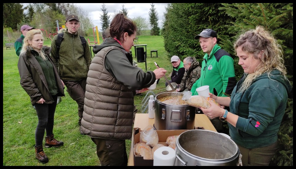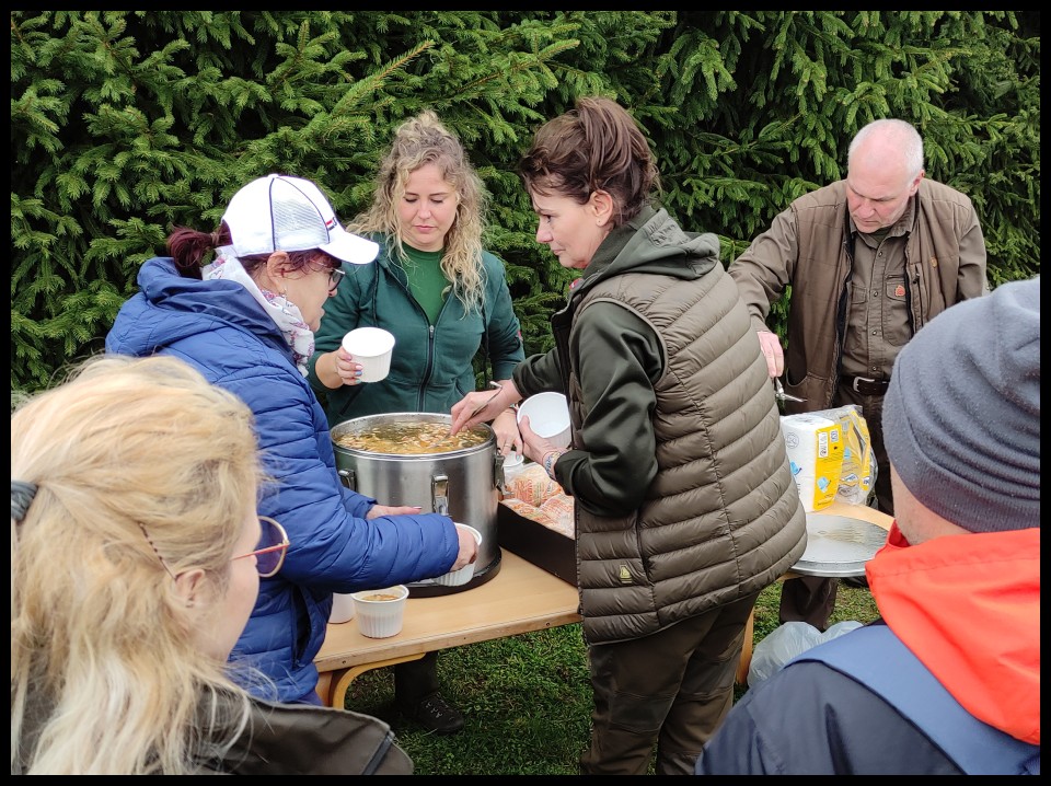 Po zakończeniu akcji wszyscy uczestnicy zostali zaproszeni na stadion miejski, gdzie czekała na nich gorąca grochówka przygotowana przez pracowników Nadleśnictwa Bartoszyce, kiełbaski, kaszanka z grilla lub ogniska oraz ciepła herbata i kawa.