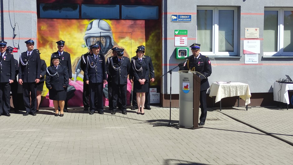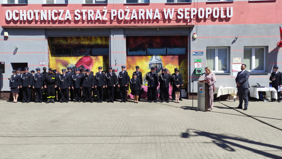 Pod budynkiem remizy odbył się uroczysty apel, podczas którego przemówienia wygłosili zaproszeni goście. Pani burmistrz Sępopola, Irena Wołosiuk, powitała wszystkich obecnych, wyrażając wdzięczność strażakom za ich ciężką pracę, oddanie oraz za wychowywanie młodzieży w duchu pomocy drugiemu człowiekowi.