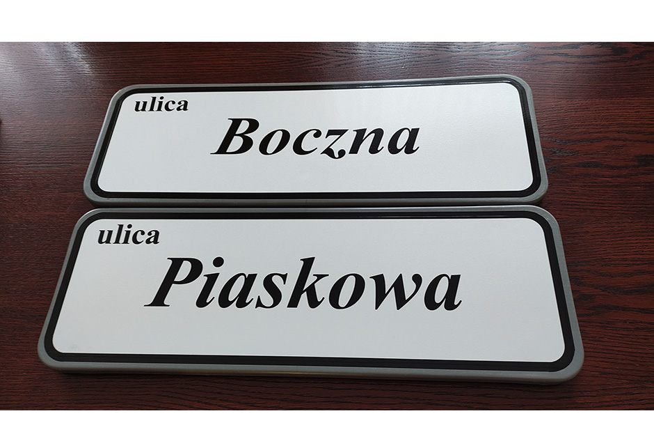 Pragniemy poinformować, że dzięki zaangażowaniu pracowników urzędu miejskiego wykonaliśmy zupełnie nowe tabliczki z nazwami ulic naszego miasta. Zamiast standardowych tabliczek z nazwami ulic, urząd zakupił wysokiej jakości podkłady przeznaczone na znaki drogowe, charakteryzujące się znacznie większą trwałością. A dzięki pracy własnej zaoszczędzono środki finansowe.