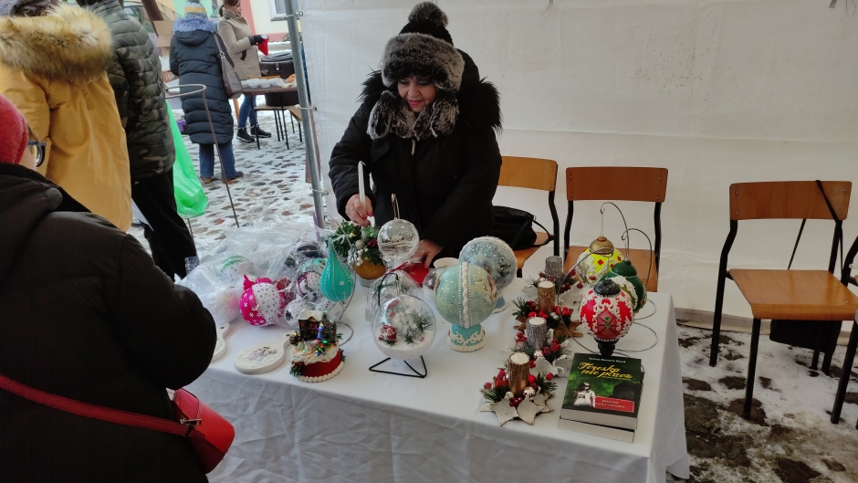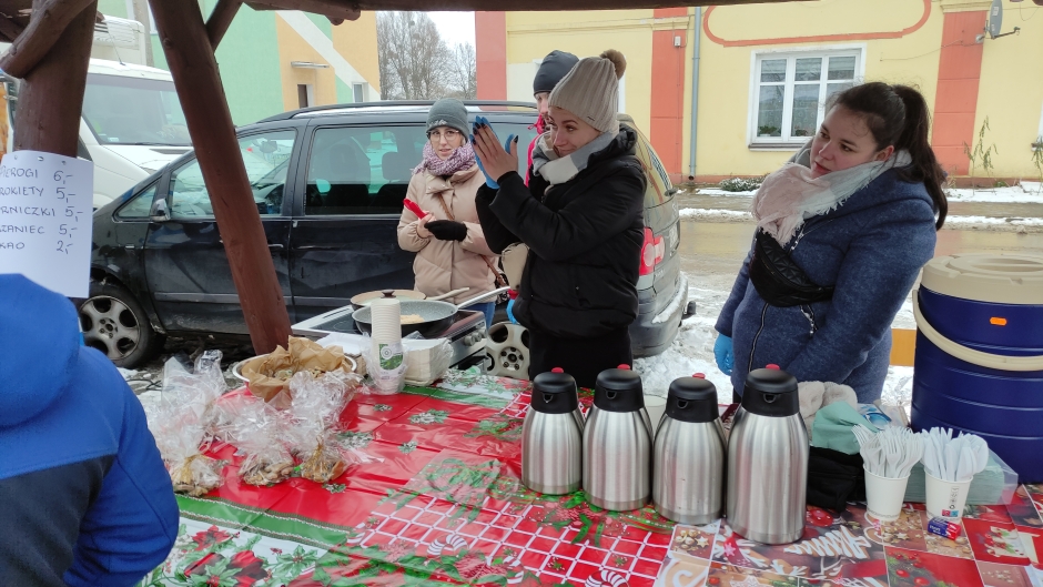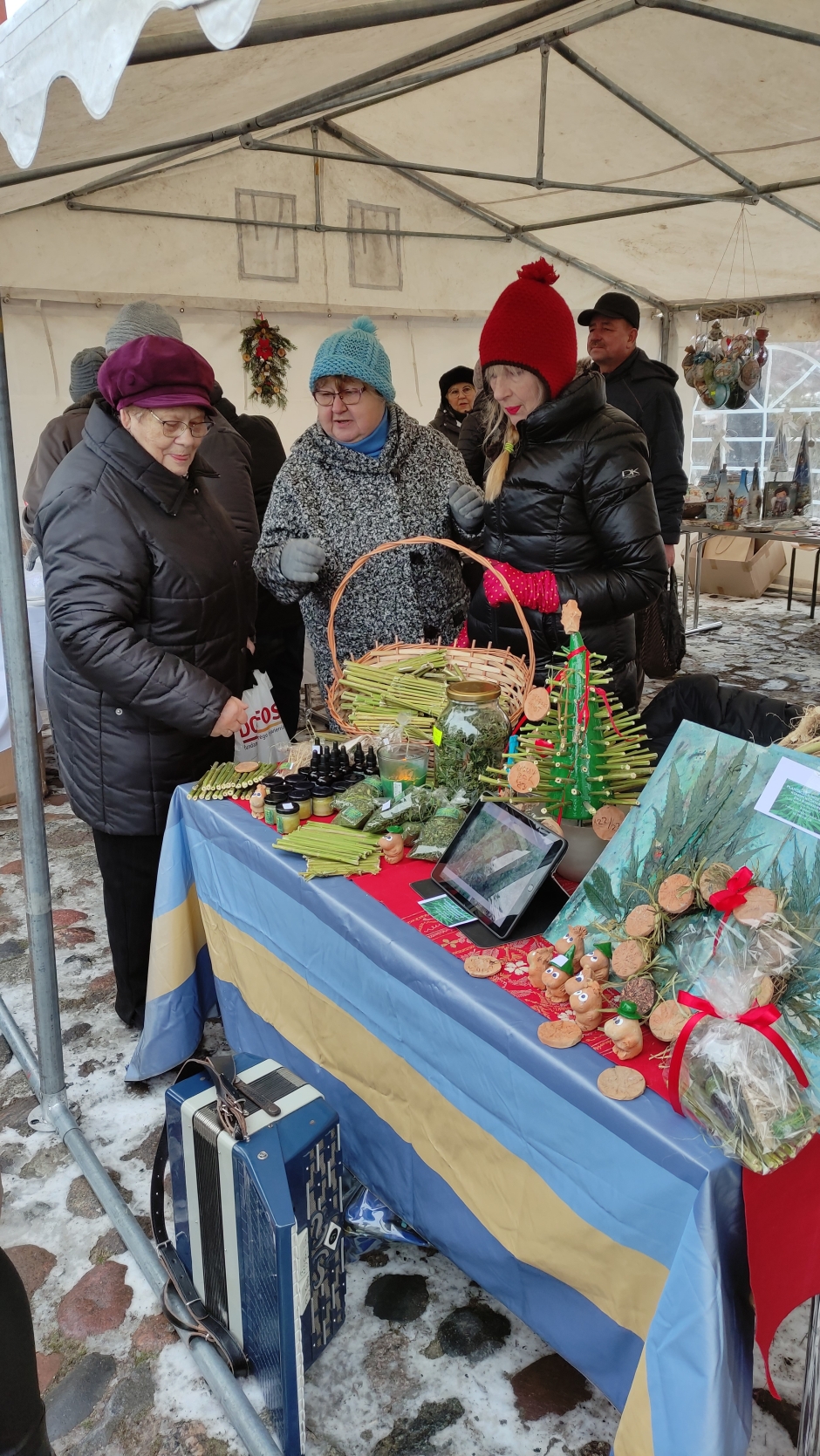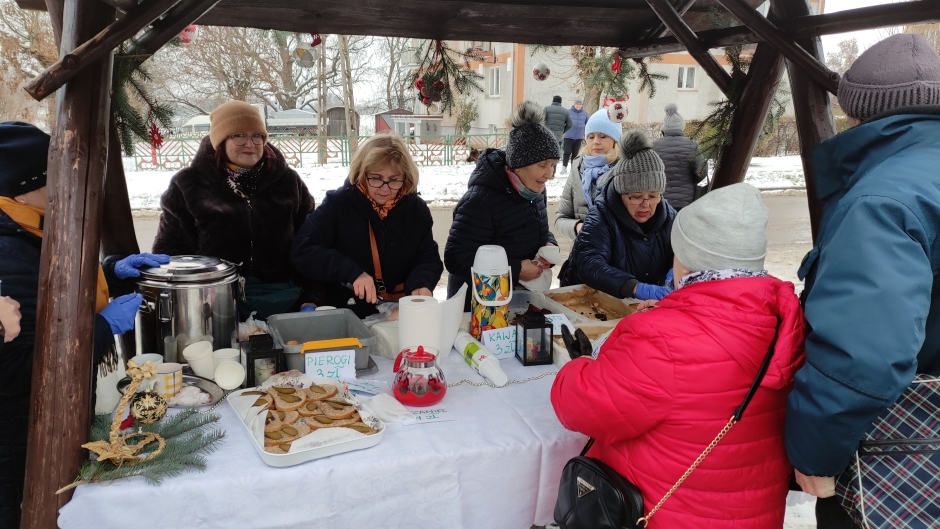 Tegoroczny Jarmark Bożonarodzeniowy zgromadził wielu mieszkańców miasta i gminy Sępopol. Przy skocznej muzyce oraz występach w konkursie o laur „Słowika Gminy Sępopol”, mieszkańcy mogli miło spędzić mroźną niedzielę. Nie brakowało również wielu innych atrakcji, w tym wielu stoisk na których można było nabyć rękodzieło twórców lokalnych, przepiękne stroiki świąteczne czy serwety, bogato zdobione bombki, ręcznie wykonane świece świąteczne, czy też skosztować domowych wypieków oraz serów. Dzieci wykonały świąteczne pierniki, a dla wszystkich był bigos oraz kiełbaski do pieczenia w ognisku. Swoje stoiska miały między innymi: Koło Gospodyń Wiejskich, przedstawiciele sołectw na których serwowano gorące napitki, chleb z domowym smalcem i ogórkiem, pierogi, makowce, szarlotki i wiele innych łakoci. Specjalne stoisko wystawił „Pan Chlebek”, na którym wszyscy zainteresowani mogli czynnie uczestniczyć w warsztatach pieczenia pierników. Własnoręcznie wykonane - pod czujnym okiem mistrza - ciasto smakuje najlepiej. Kolejne interesujące stoisko wystawiła p. Teresa Barszcz-Ward, na którym prezentowała własnoręcznie wykonane stroiki, bombki. Można było również nabyć książkę, której autorką jest Pani Teresa. Wśród rękodzieła oraz wielu świątecznych bibelotów były również przepiękne serwety, szale, chusty, ozdoby choinkowe, zestawy zawierające świątecznie opakowane sianko, które tradycyjnie jest umieszczane pod świątecznym obrusem podczas świąt. Dziękujemy za tak liczny udział w Jarmarku wszystkim mieszkańcom, a szczególne słowa podziękowania kierujemy do zespołów biorących udział w konkursie: za wspaniałe, różnorodne wykonania kolęd i pastorałek.