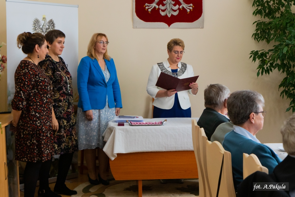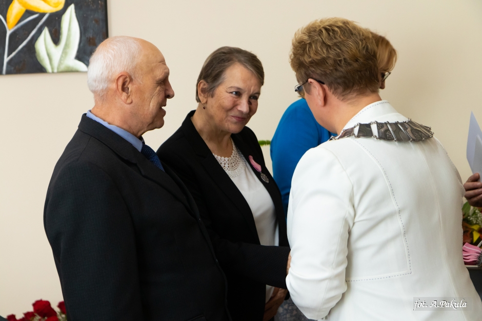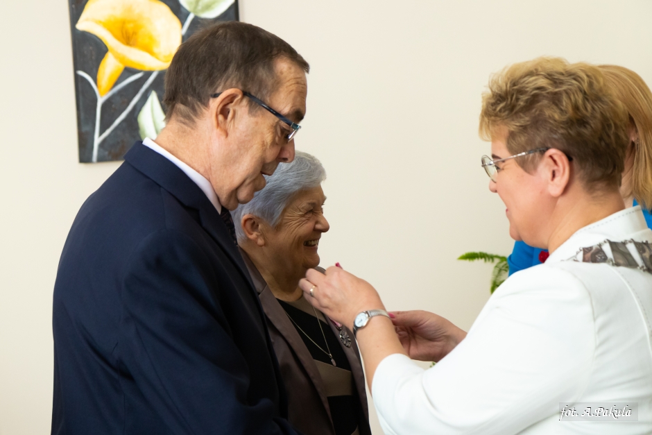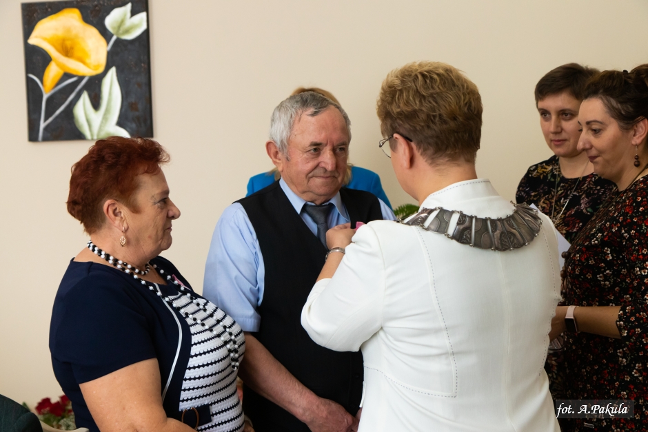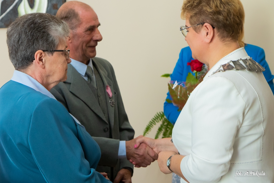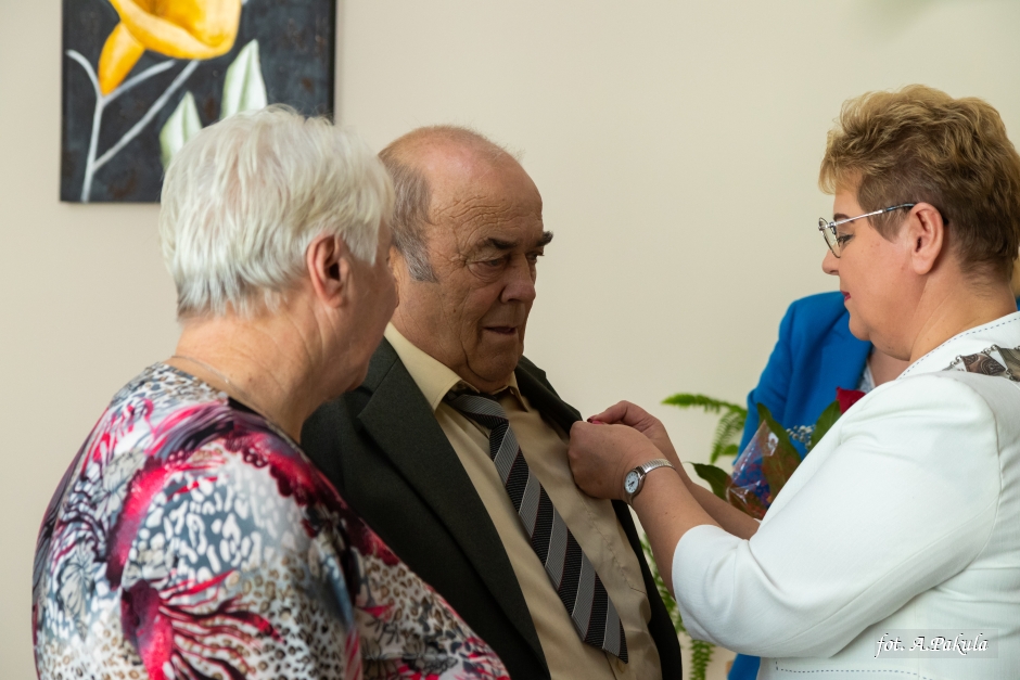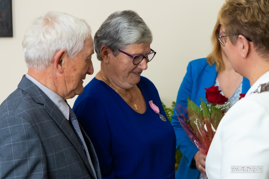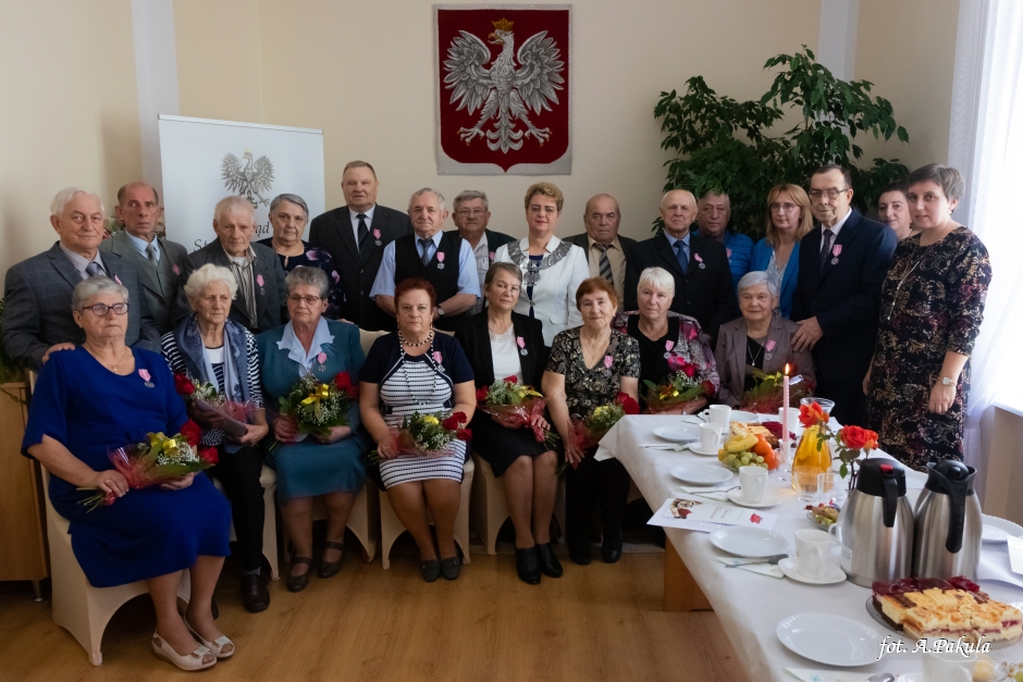 Po uroczystym wręczeniu odznaczeń były wspólne zdjęcia, kwiaty, pamiątkowe dyplomy, poczęstunek oraz tradycyjna lampka szampana. Spotkanie odbyło się w sympatycznej atmosferze, nie zabrakło w tym dniu prawdziwych emocji, wzruszeń, radości i wspomnień sprzed lat. Dostojnym Jubilatom raz jeszcze składamy życzenia wszelkiej pomyślności oraz kolejnych szczęśliwych lat w zdrowiu, zgodzie i wzajemnej miłości.
