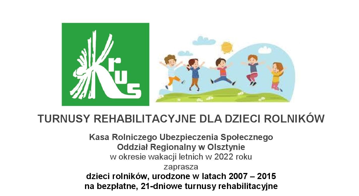 TURNUSY REHABILITACYJNE DLA DZIECI ROLNIKÓW UBEZPIECZONYCH W KRUS 2022