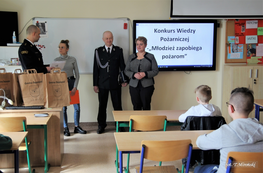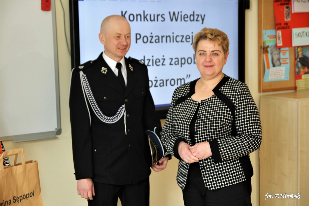 Dominik Macuk i Wiktoria Stelmach z Zespołu Szkolno-Przedszkolnego w Sępopolu to zwycięzcy eliminacji gminnych Ogólnopolskiego Turnieju Wiedzy Pożarniczej “Młodzież Zapobiega Pożarom” w Sępopolu. Konkurs odbył się 8 kwietnia 2022 roku w Zespole Szkolno-Przedszkolnym w Sępopolu, a jego organizatorami była Komenda Powiatowa Państwowej Straży Pożarnej oraz Urząd Miejski w Sępopolu. Patronat nad konkursem objęła Irena Wołosiuk, burmistrz Sępopola.