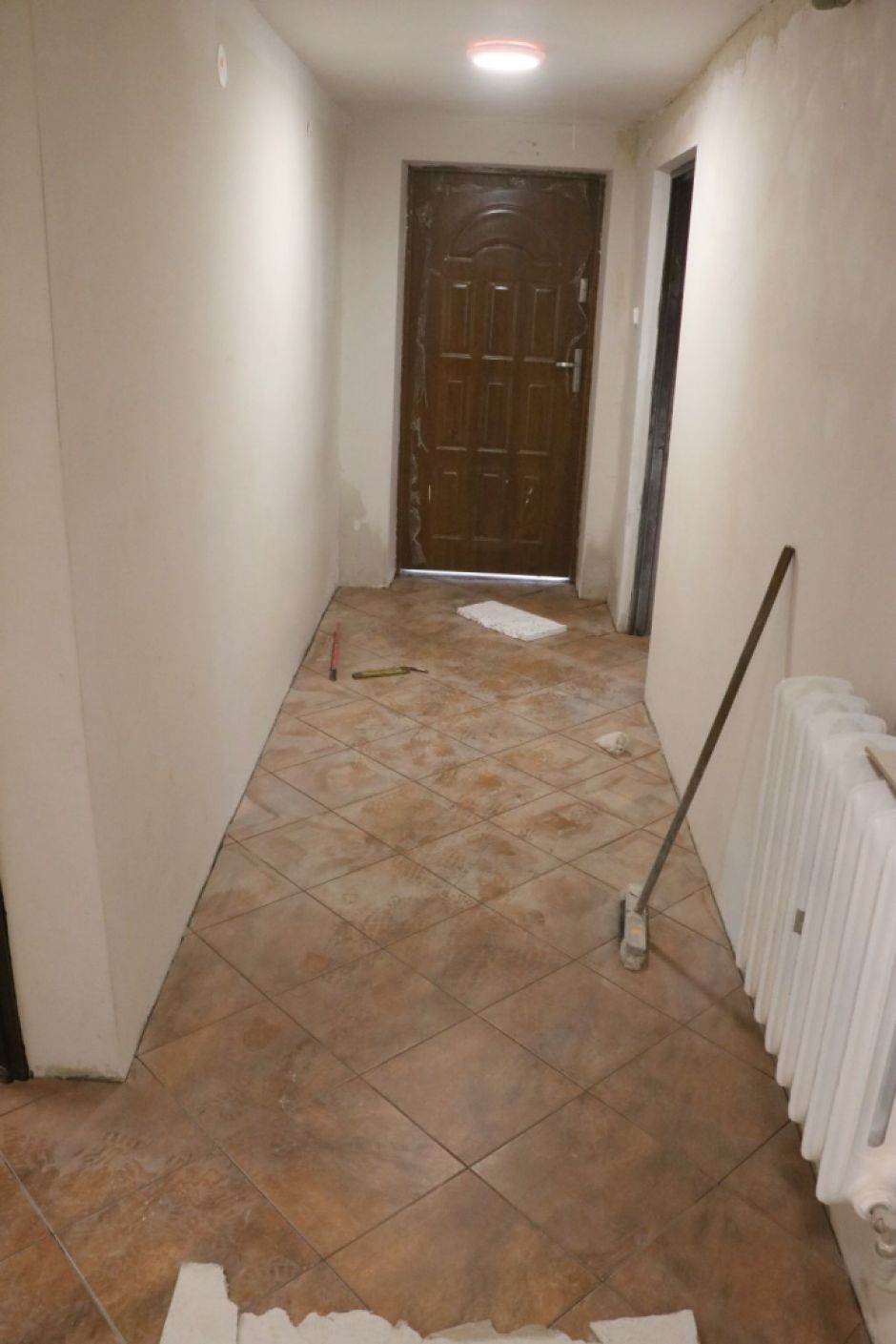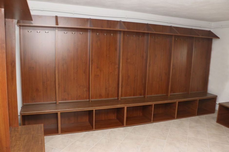 W ramach prac na ścianach pomieszczenia z natryskami ułożono nową glazurę, uprzednio gruntownie przebudowując całą instalację wodociągowo-sanitarną oraz elektryczną. Skuto wszystkie posadzki, wykonano nową wylewkę poziomującą podłogi, ułożono terakotę wraz z systemem odprowadzającym wodę. W celu zapewnienia właściwej opieki zawodnikom którzy w czasie rozgrywek doznali urazów, wybudowano specjalny brodzik w którym w ramach zabiegów rehabilitacyjnych zawodnicy będą mogli odzyskiwać pełną sprawność ruchową. Dzięki wzniesieniu nowych ścian działowych wyodrębniono pomieszczenie na toaletę. Dotychczas parter budynku nie posiadał takiego pomieszczenia, a jedyna toaleta w budynku znajdowało się na piętrze, do którego wejście znajduje się na zewnątrz budynku. Remontowane natryski zostały wyposażone w nową armaturę sanitarną, zlewy, oświetlenie, a także wymieniono wszystkie drzwi wewnętrzne wraz z ościeżnicami. Zakres prac obejmował również wymianę drzwi zewnętrznych, ponieważ stare już dawno straciły swą funkcjonalność i nie nadawały się nawet do odbudowy. Kolejnym wyremontowanym pomieszczeniem jest główna szatnia zawodników LKS Łyna. Od tej chwili każdy z zawodników posiada własne indywidualnie do niego przypisane miejsce. W celu zaoszczędzenia jak największych środków finansowych, we własnym zakresie wykonano projekt mebli w które została wyposażona szatnia. Koszty jakie zostały poniesione na meble, to jedynie zakup odpowiednio dociętych elementów, w cenie surowych płyt meblowych. Montaż natomiast został wykonany nieodpłatnie przez osoby którym na sercu leży dobro naszego klubu. Ze względu na duże zawilgocenie ścian, jeszcze w tym roku wykonane będzie ułożenie drenażu odwodniającego fundamenty wokół budynku, w który budynek nigdy nie był wyposażony. Doraźnie w pomieszczeniach szatni dokonano osuszenia ścian, dzięki uprzejmości lokalnego przedsiębiorcy z Roskajm, który udostępnił nieodpłatnie specjalistyczne urządzenie przeznaczone do tego celu. Kolejnym krokiem było wykonanie dodatkowych otworów wentylacyjnych, tak by poprawić cyrkulację powietrza wszystkich pomieszczeń. Na prace końcowe oczekuje jeszcze korytarz oraz pomieszczenie drugiej szatni. Dotychczas wykonano w tych pomieszczeniach ułożenie instalacji elektrycznej, wygładzono ściany i sufity, wykonano nową posadzkę, a w korytarzu ułożono terakotę.