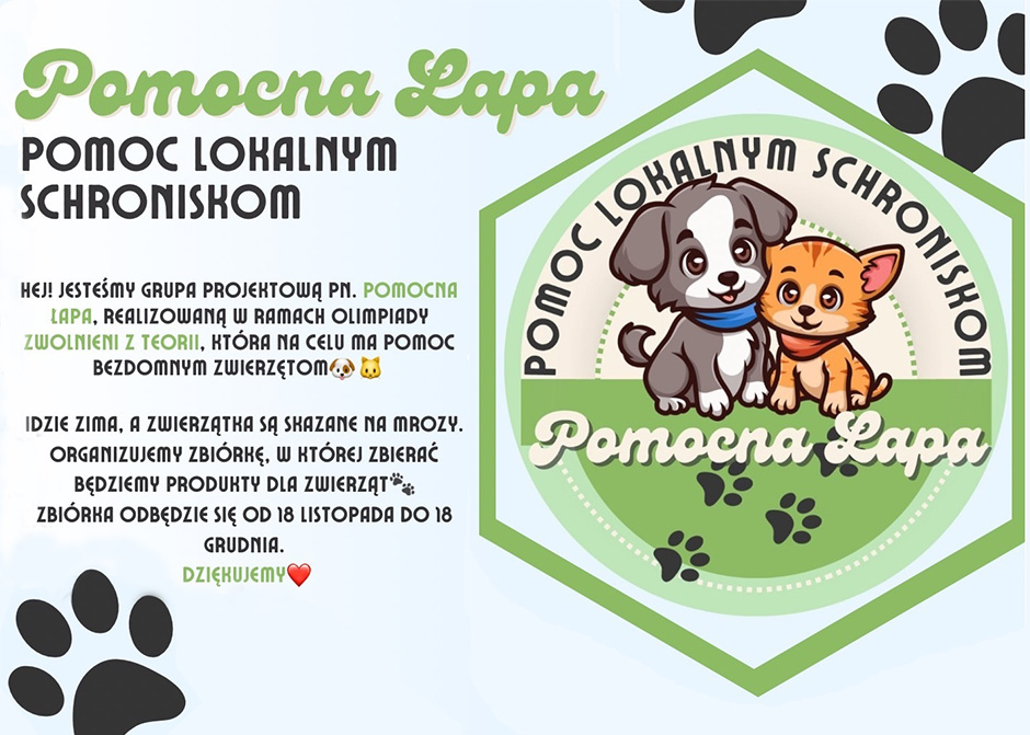 Zima to trudny czas, szczególnie dla bezdomnych i opuszczonych zwierzaków, które są narażone na chłód i brak podstawowych środków do życia. Dlatego młodzież zorganizowała zbiórkę, której celem jest wsparcie lokalnych schronisk.