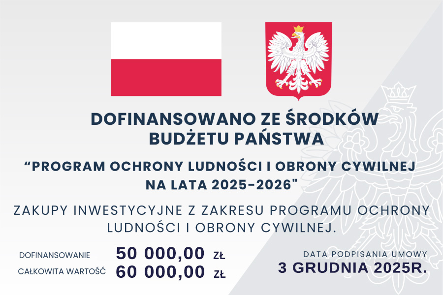Gmina Sępopol zakończyła zakup nowoczesnego sprzętu technicznego przeznaczonego na potrzeby gminy. Całkowity koszt inwestycji wyniósł około 138 000 zł brutto (netto około 112 000 zł), z czego aż 90% zostało sfinansowane ze środków zewnętrznych pozyskanych w ramach programu obrony ludności i ochrony cywilnej. Oznacza to bardzo niski wkład własny gminy, przy jednoczesnym pozyskaniu nowoczesnego i wielofunkcyjnego wyposażenia.
