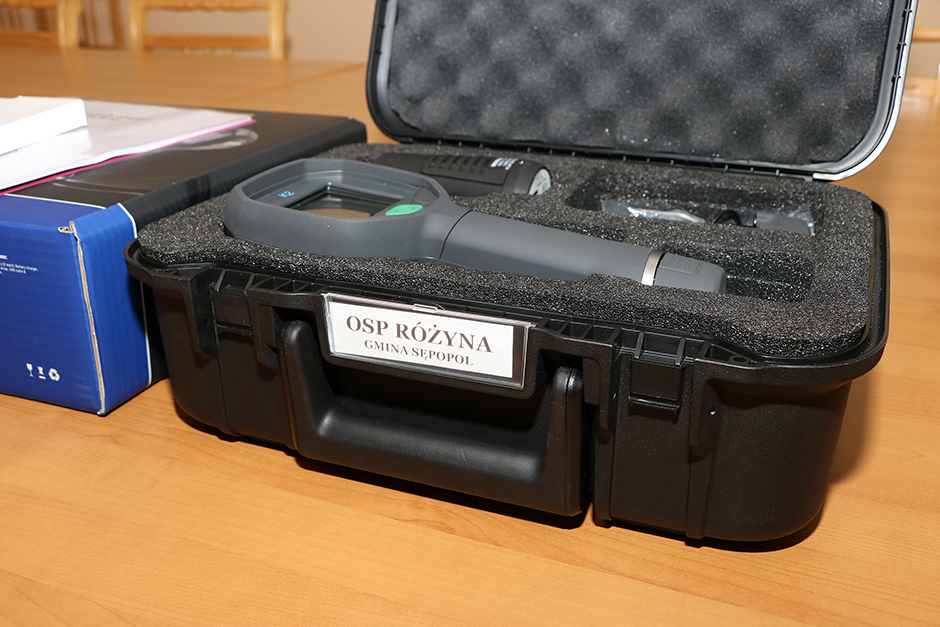 Dzięki wsparciu w wysokości 10 000 zł otrzymanemu od samorządu województwa warmińsko-mazurskiego, w związku ze złożonym wnioskiem przez burmistrza Sępopola jeszcze na początku marca bieżącego roku, możliwe było obecnie doposażenie w nowoczesny sprzęt jednej z jednostek Ochotniczej Straży Pożarnej z terenu naszej gminy. Tym razem nowe wyposażenie trafiło do jednostki zlokalizowanej w miejscowości Różyna. W ramach środków zakupiono profesjonalną kamerę termowizyjną firmy „FLIR Systems”, która jest największą na świecie firmą specjalizującą się w projektowaniu i produkcji kamer termowizyjnych, komponentów i czujników obrazowania. Dodatkowo doposażono zestaw o kolejny akumulator, ładowarki umożliwiające zasilenie sprzętu podczas prowadzenia akcji ratowniczych w terenie, a także bardzo trwałą walizkę transportową, zabezpieczającą sprzęt przed zniszczeniem podczas działań ratowniczych. Czułość kamery umożliwia pomiar w zakresie temperatur od 0oC do 500oC, która może być zawężana w zależności od chwilowych potrzeb w związku z aktualnie wybranym jednym z siedmiu trybów, na które składają się: