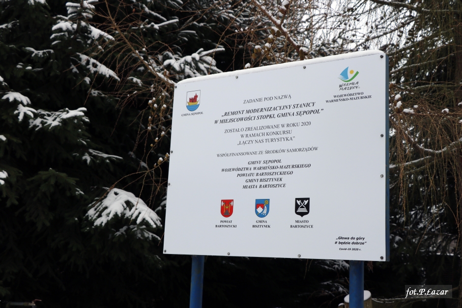Dzięki współpracy gminy z sąsiednimi samorządami, uzyskaliśmy zewnętrzne środki na gruntowny remont stanicy wodnej nad rzeką Łyną w miejscowości Stopki. Ogłoszone przez samorząd województwa warmińsko-mazurskiego postępowanie konkursowe pn. "Łączy nas turystyka", premiowało dodatkowo wnioski zawierające zamierzenia inwestycyjne wykonane przy udziale kilku samorządów. Dlatego też, na etapie składania wniosków zawarliśmy porozumienia na mocy których w kosztach realizacji naszej inwestycji pomoc finansową zadeklarowały: samorząd powiatu oraz samorząd miasta Bartoszyce. Dzięki tym deklaracjom oraz dobrze wykonanej dokumentacji konkursowej, nasz wniosek zajął 1 miejsce na liście inwestycji wspartych przez samorząd województwa. Za to wsparcie włodarzom bardzo dziękujemy. Na dodatkowe słowa podziękowania zasługuje samorząd z Bisztynka, który dodatkowo zadeklarował pomoc finansową przy realizacji przedsięwzięcia.