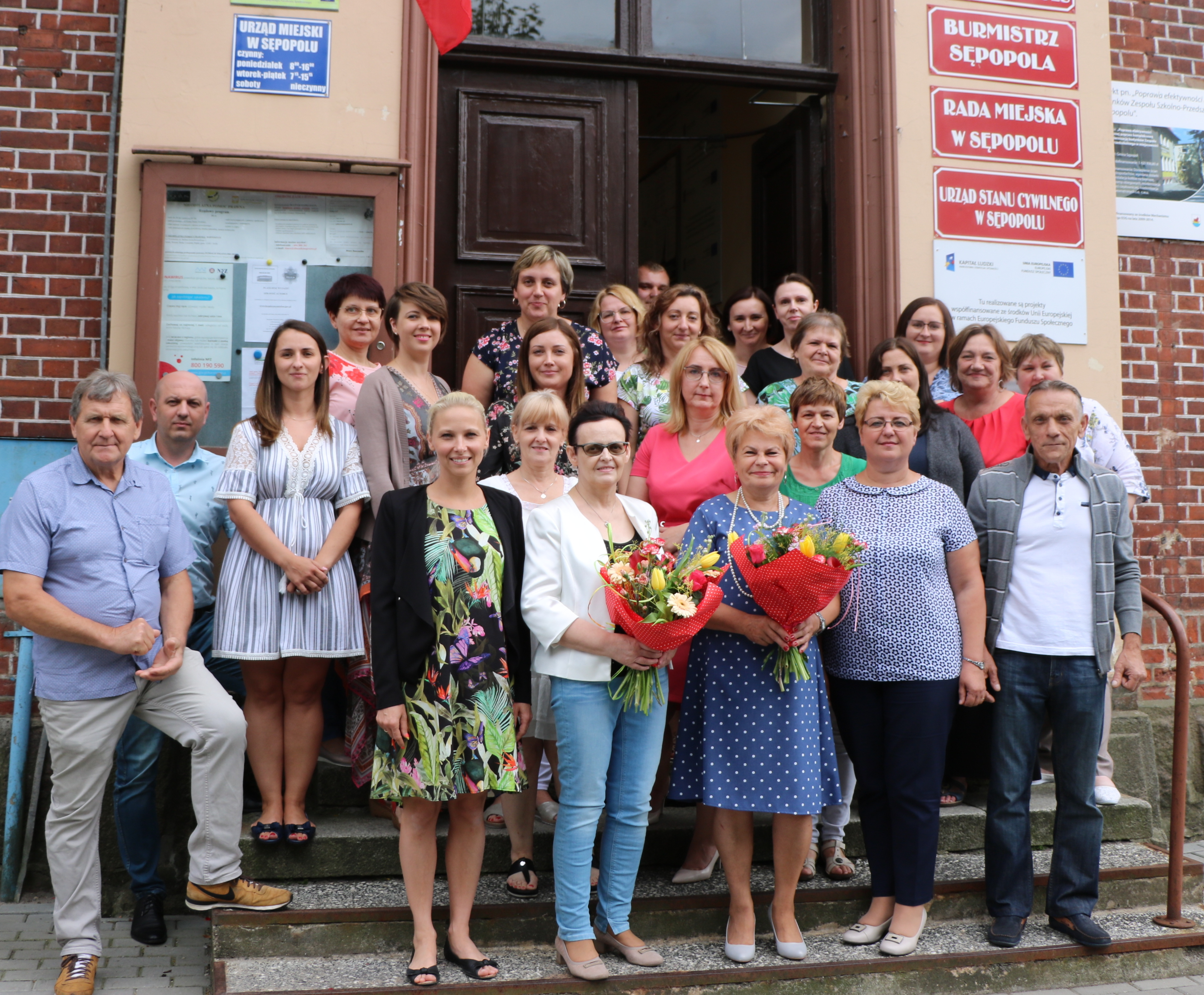 Podczas oficjalnego pożegnania w sali konferencyjnej, Burmistrz Sępopola Irena Wołosiuk wyraziła słowa uznania i szacunku oraz dziękowała za te wszystkie lata pracy w sępopolskim samorządzie. Dziękując za te piękne lata, poświęcenie i oddanie, lojalność oraz trud włożony w pracę w imieniu wszystkich pracowników Urzędu jeszcze raz życzymy spełnienia marzeń, pomyślności i wielu radości w życiu osobistym. Niech nadchodzący czas wolny od pracy zawodowej pozwoli na realizację wielu planów i zamierzeń.