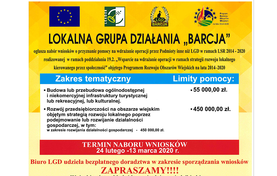 450 000 zł na podejmowanie lub rozwijanie działalności gospodarczej od LGD "Barcja"