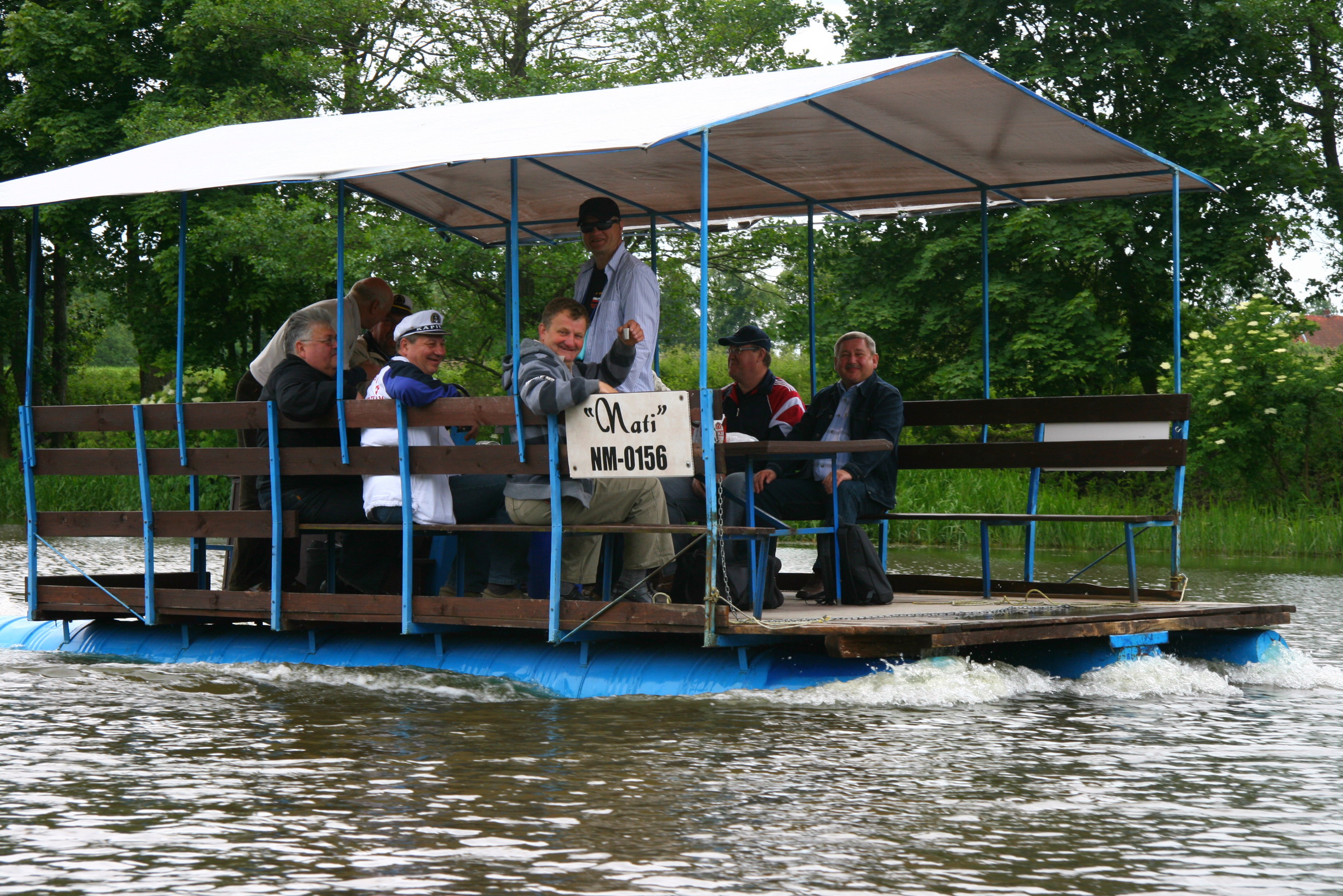 to statek wodny mający dwa połączone sztywno kadłuby umieszczone równolegle względem siebie. Korzystając z tej atrakcji można dopłynąć aż do wodnej granicy z Obwodem Kaliningradzkim. W gminie Sępopol przy stanicy wodnej w Stopkach znajdują się 2 jednostki pływające, które razem pomieszczą 26 osób. Każdy z katamaranów wyposażony jest w grilla. Oprócz standarowego rejsu, który trwać może od 1h do 6h istnieje mozliwość zorganizowania imprez okolicznościowych z wyżywieniem.