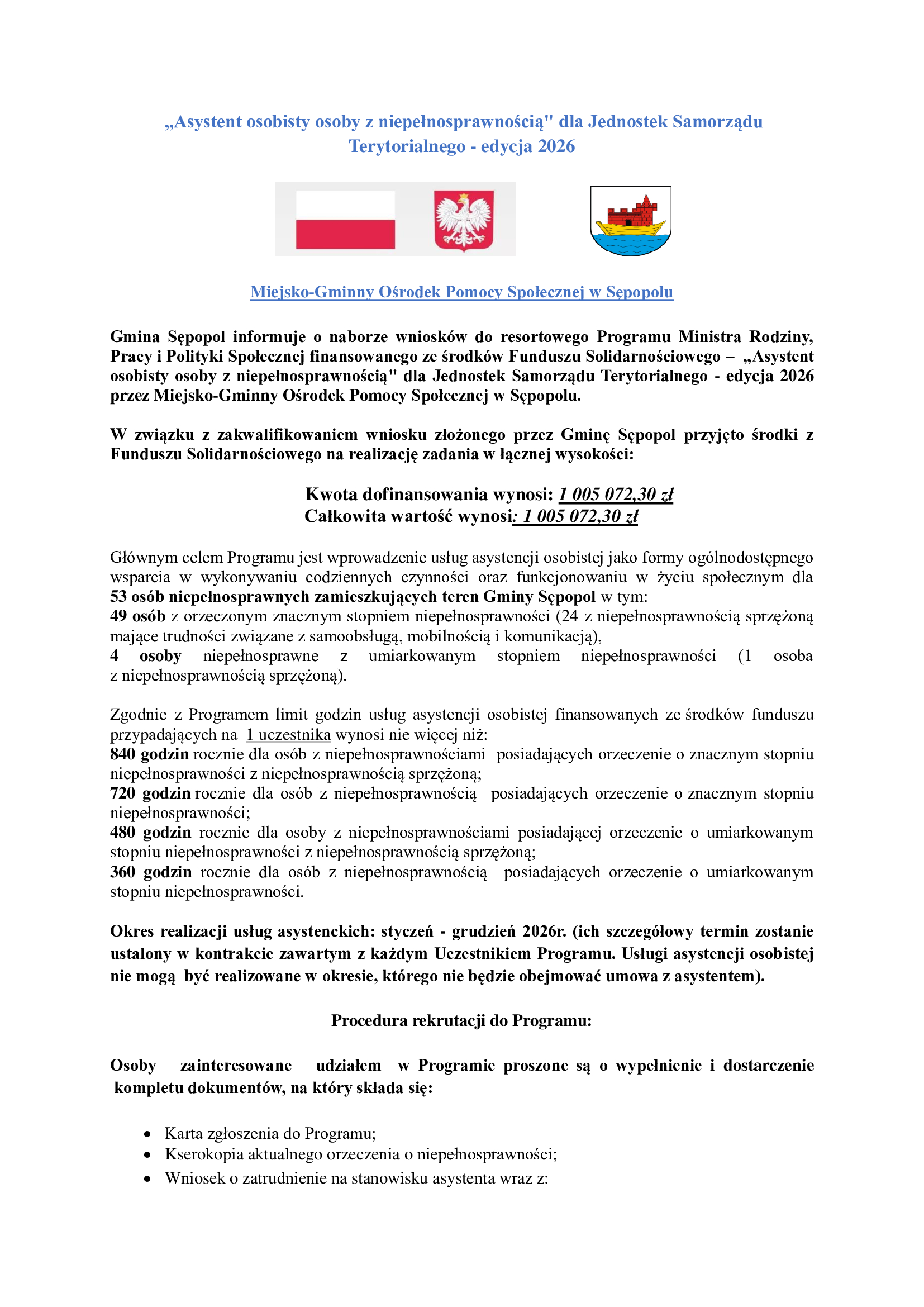 Program „Asystent osobisty osoby z niepełnosprawnością” – edycja 2026