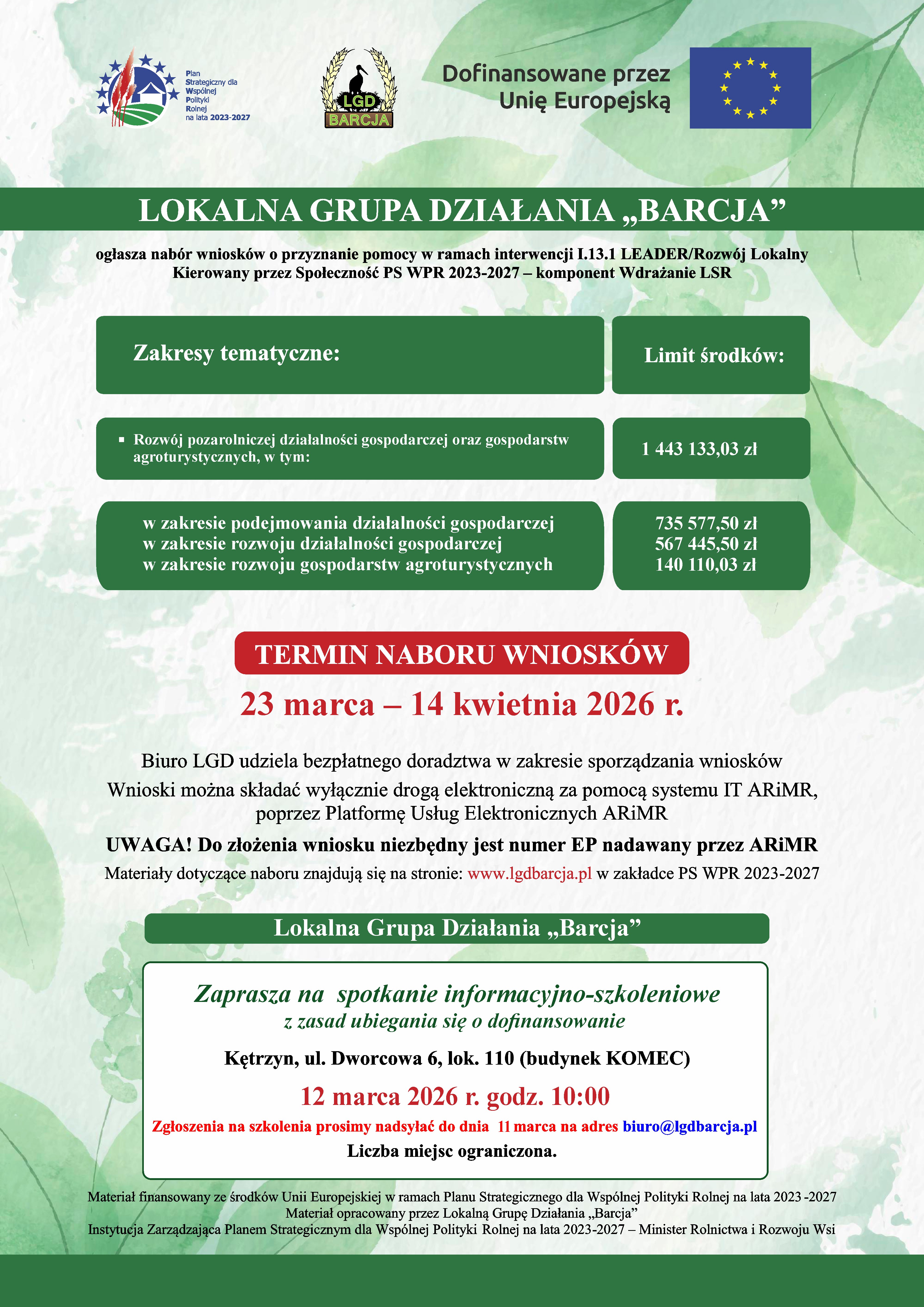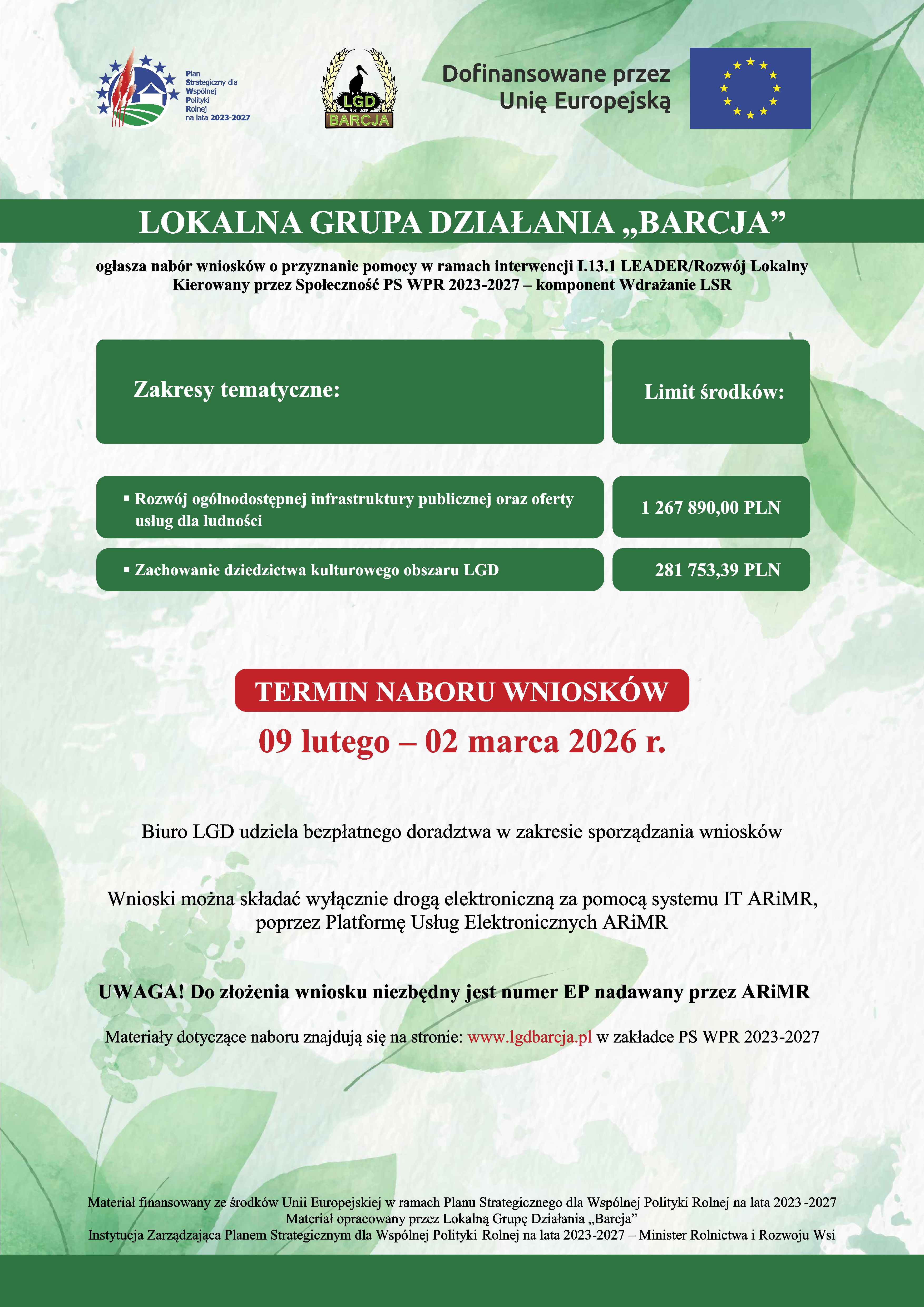 LGD "BARCJA" ogłasza nabór wniosków na 2026 rok