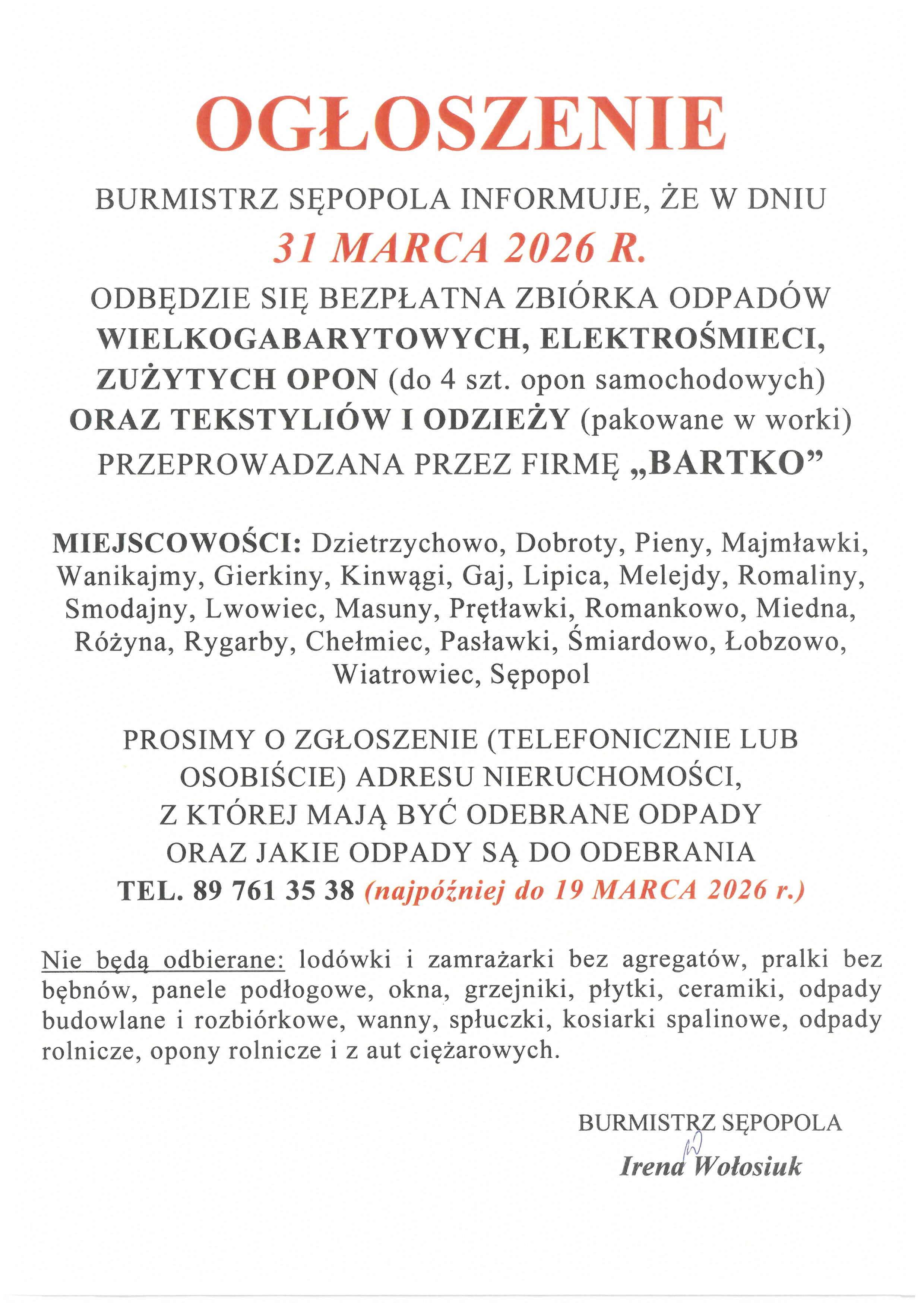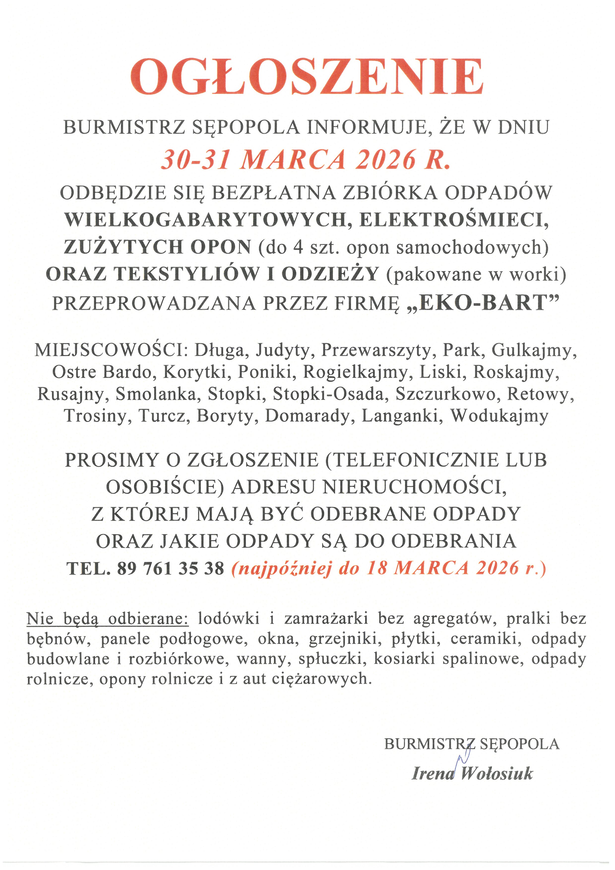 BEZPŁATNA ZBIÓRKA ODPADÓW WIELKOGABARYTOWYCH ORAZ ELEKTROŚMIECI