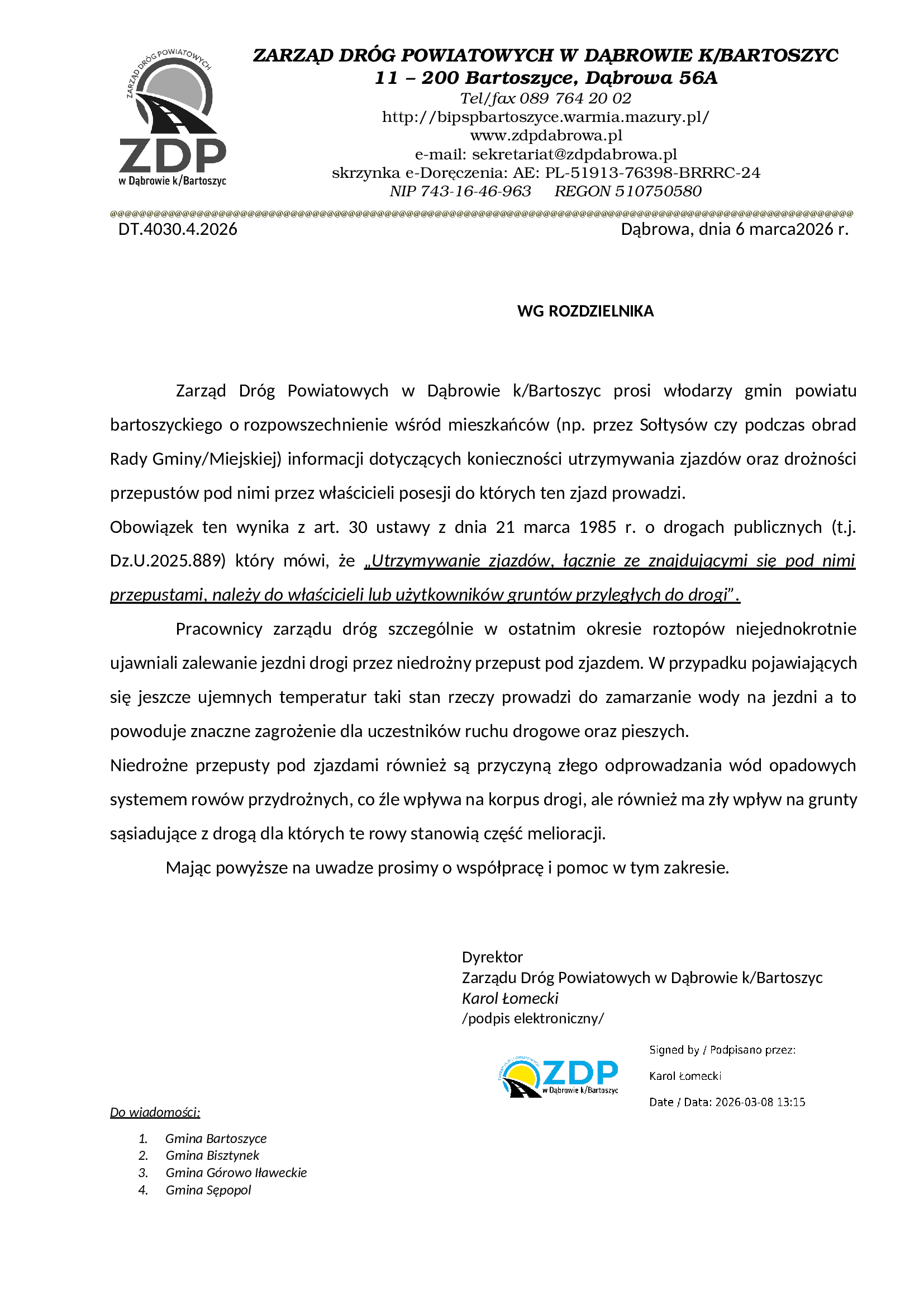 Komunikat Powiatowego Lekarza Weterynarii w Bartoszycach