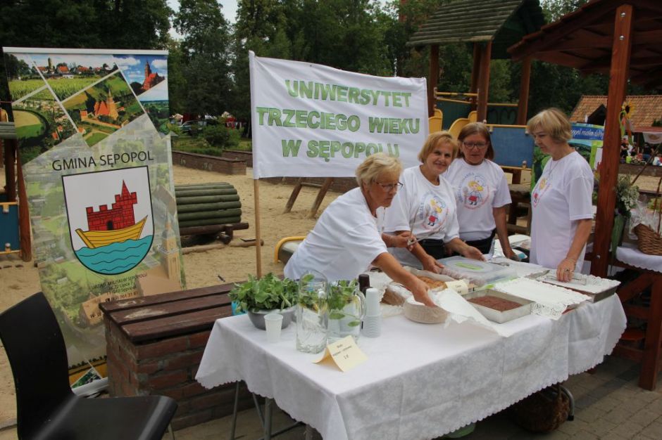 Sępopolskie stoisko, dzięki uczestnikom sekcji kulinarnej naszego UTW było tłumnie odwiedzane, a nasze miody, ciasta, sępopolskie warzywa, potrawy regionalne i materiały promocyjne cieszyły się ogromną polarnością. Zostało to również docenione przez jury bowiem zdobyliśmy trzecie miejsce w konkursie na najciekawsze stoisko.